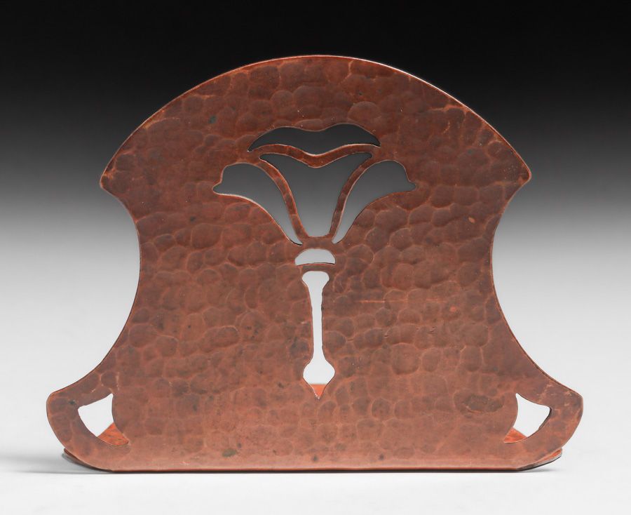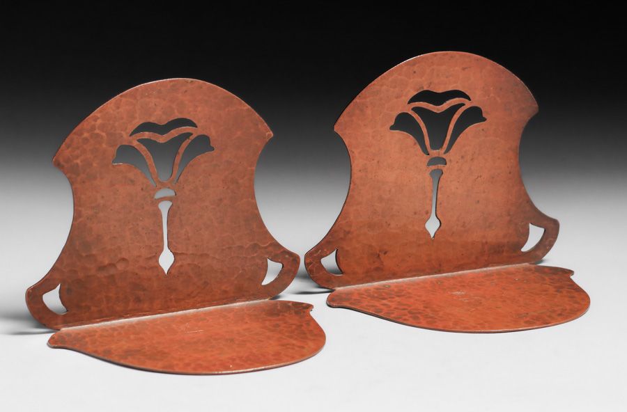 - Dirk van Erp Hammered Copper Poppy Cutout Bookends c1913-1914