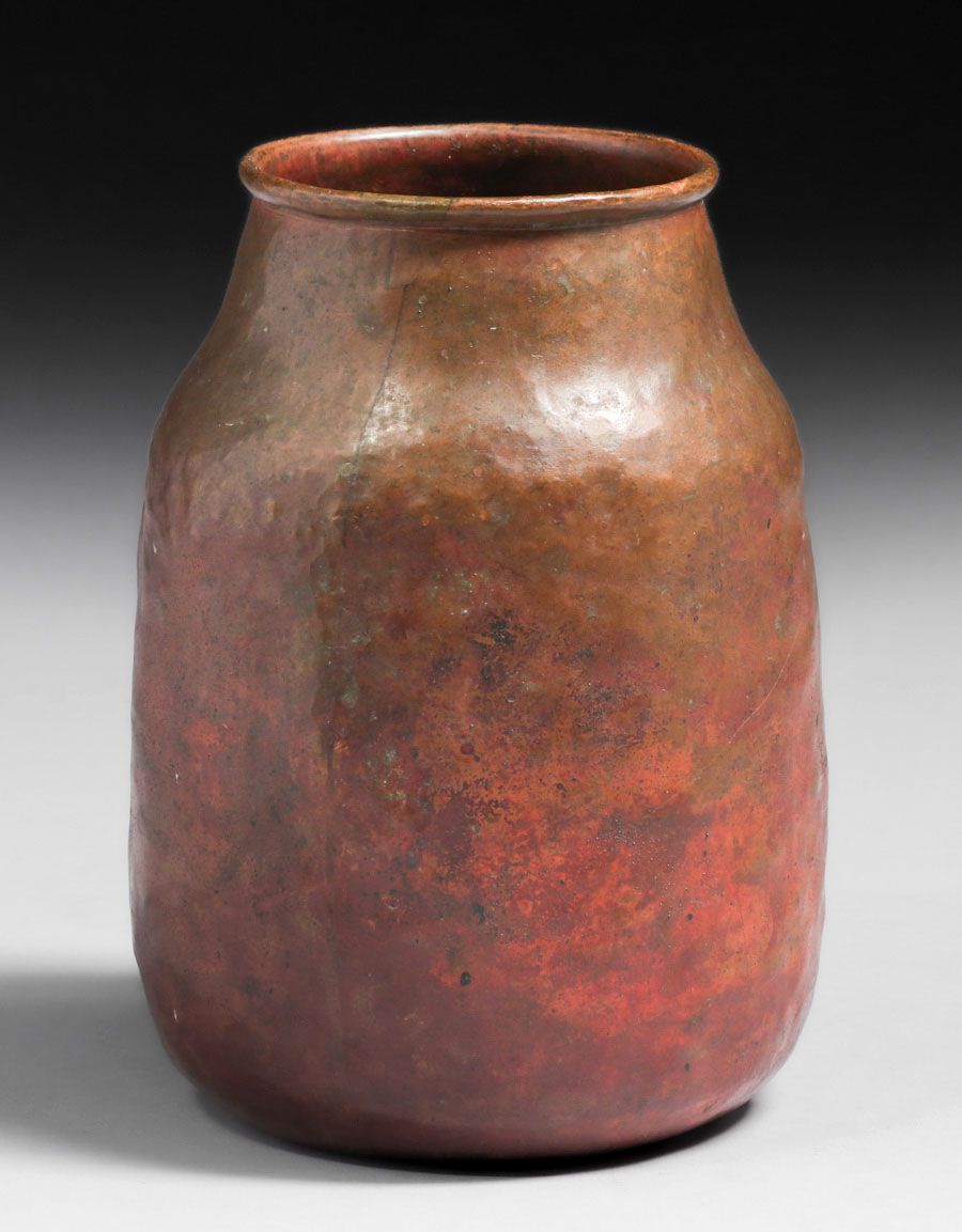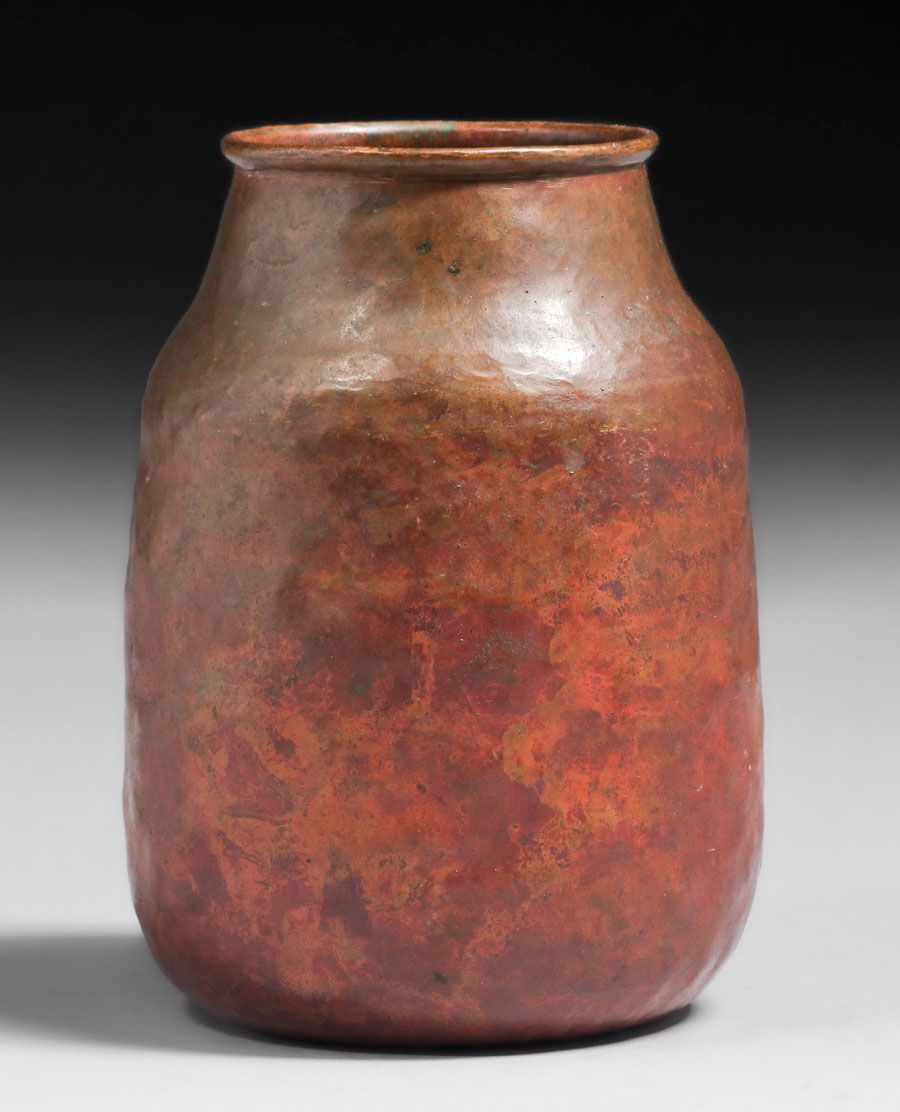 Dirk van Erp Hammered Copper Red Warty Vase c1915-1920. Signed with open-box, San Francisco mark. Excellent original red patina. 6.75"h x 4.75"d SOLD