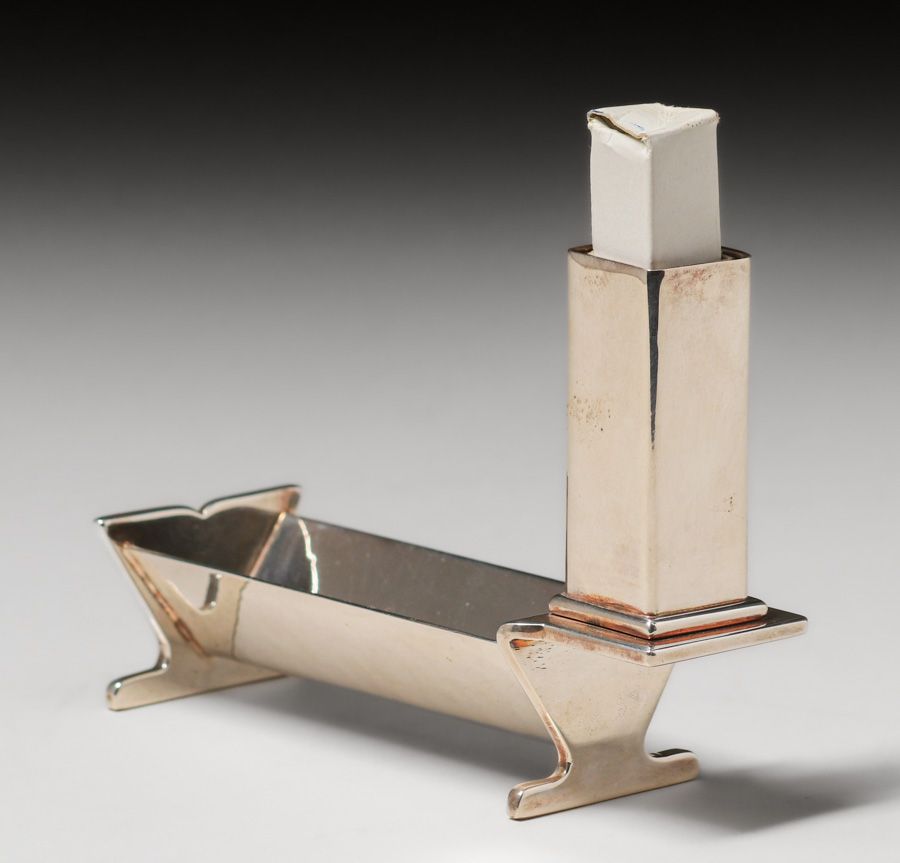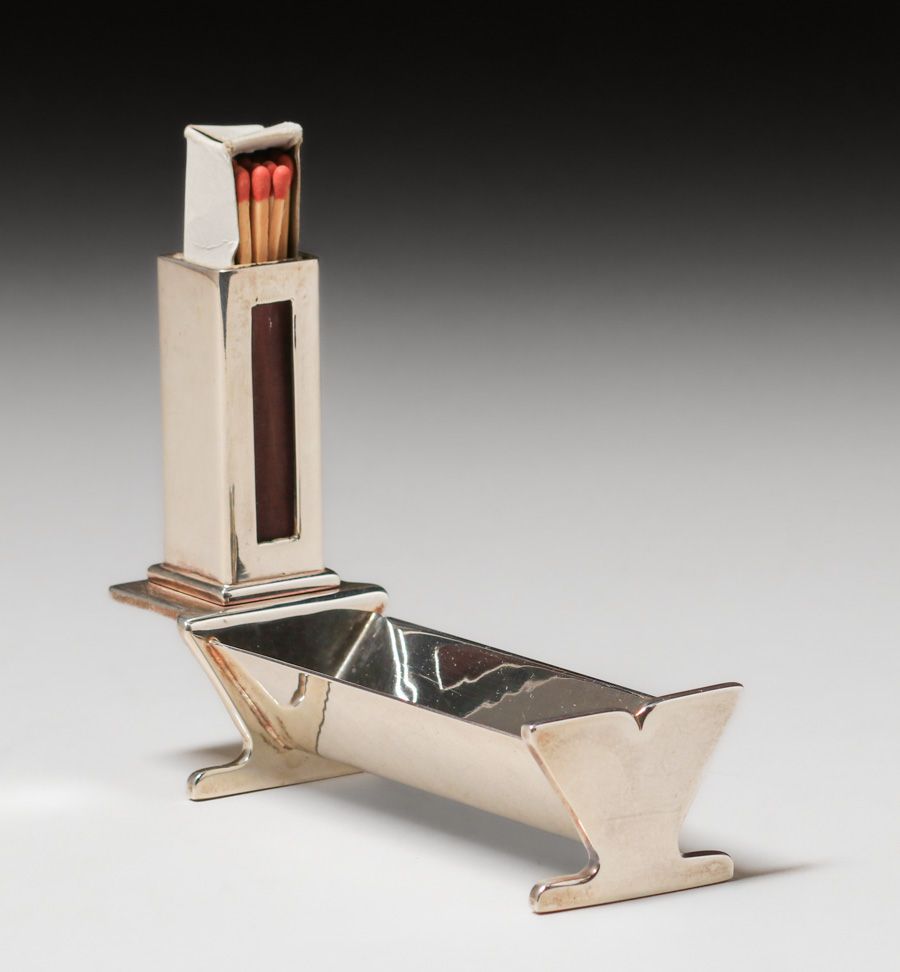 Dirk van Erp Hammered Copper Silver-Plated Cigarette & Match Box Holder c1950s. Signed with rare miniature windmill stamp. Excellent condition. 5.25" x 1 7/8"w x 3.75"h + match box SOLD