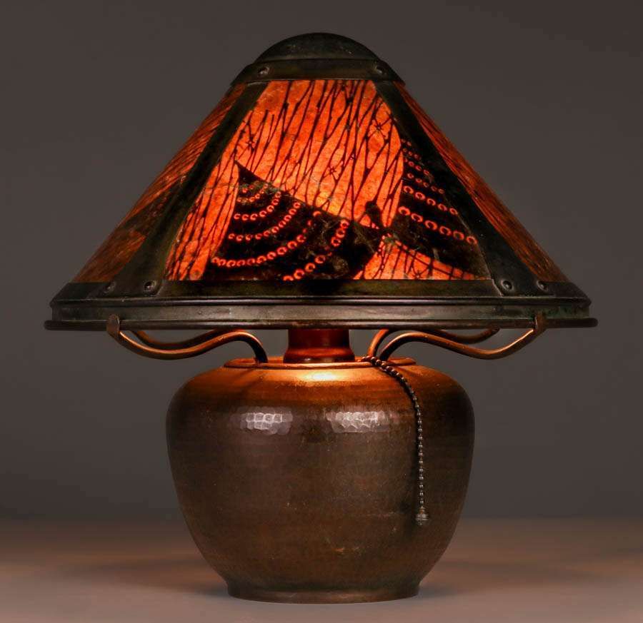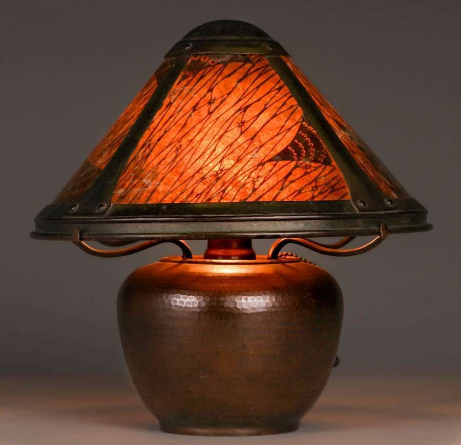 - Dirk van Erp Hammered Copper & Stenciled Mica Boudoir Lamp c1920s