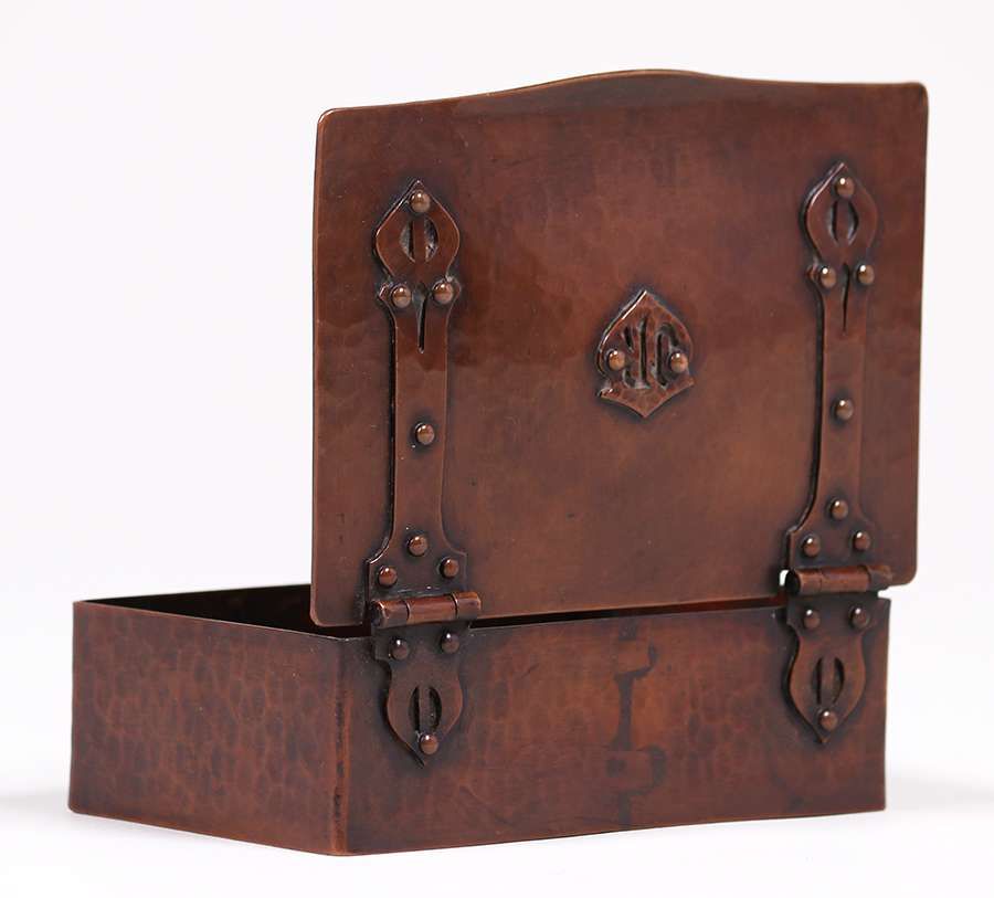 - Dirk van Erp Hammered Copper Strap-Hinge Box c1911-1912