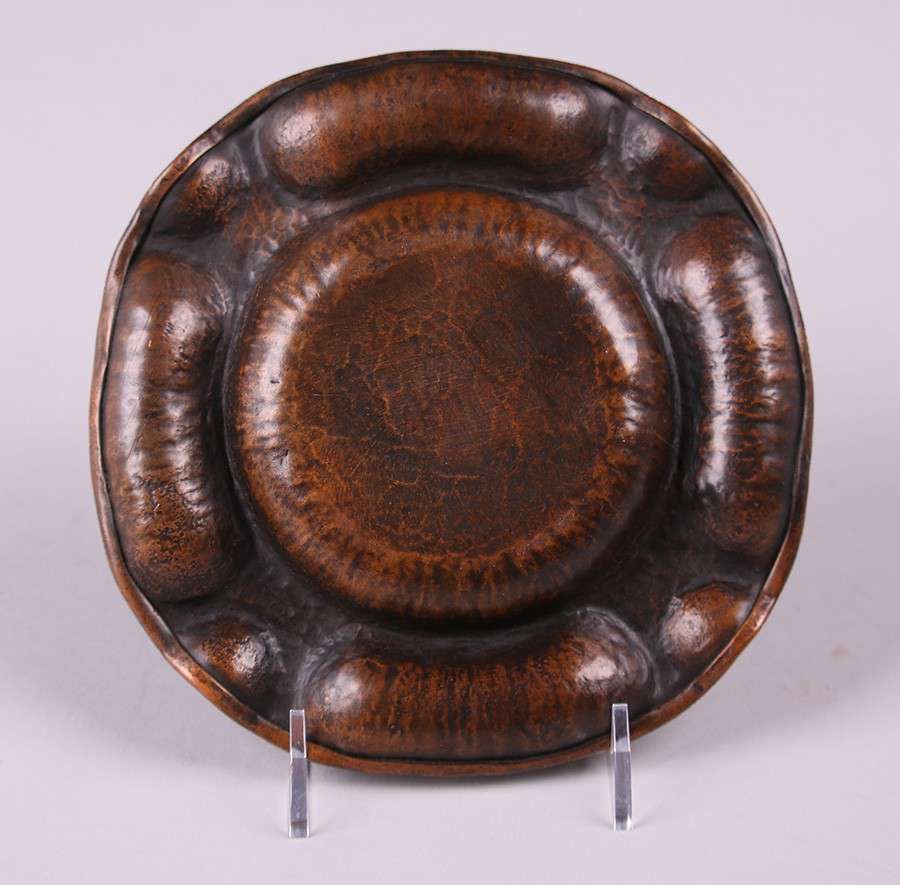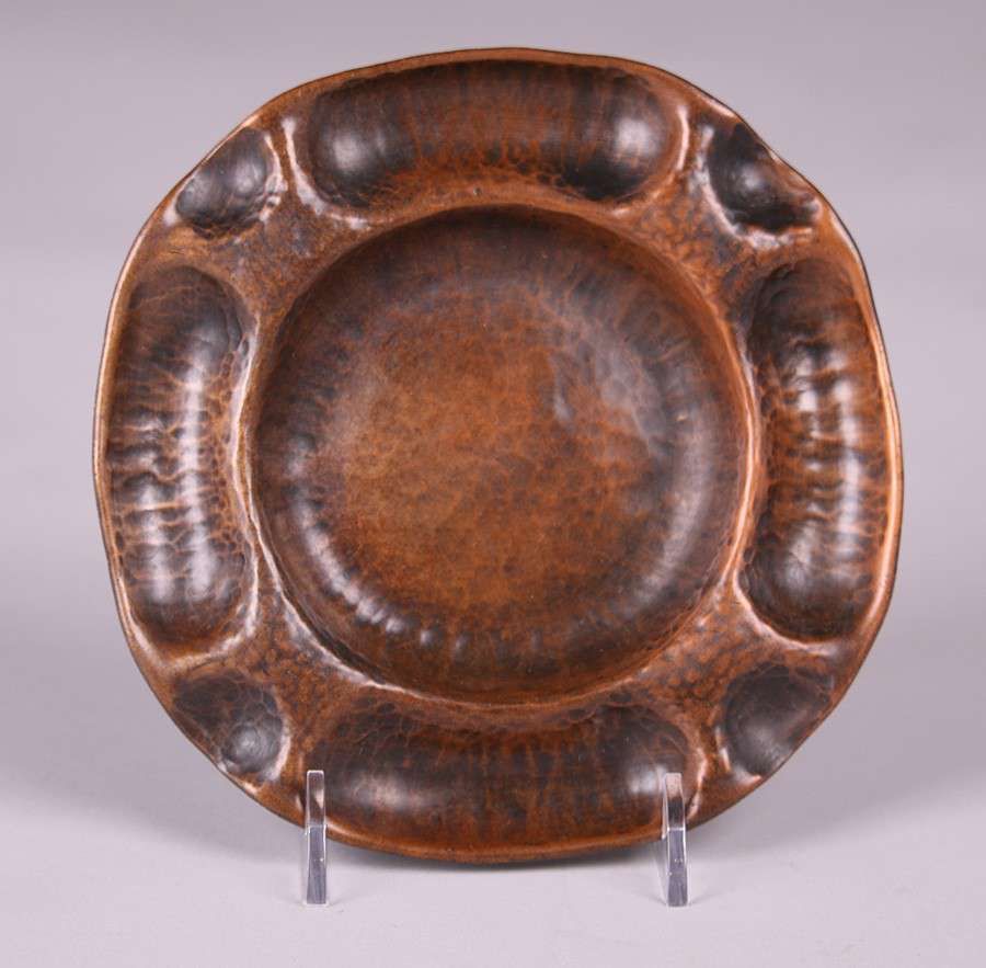 Early Unsigned Dirk van Erp Hammered Copper Tray c1909. New patina. 6"d SOLD