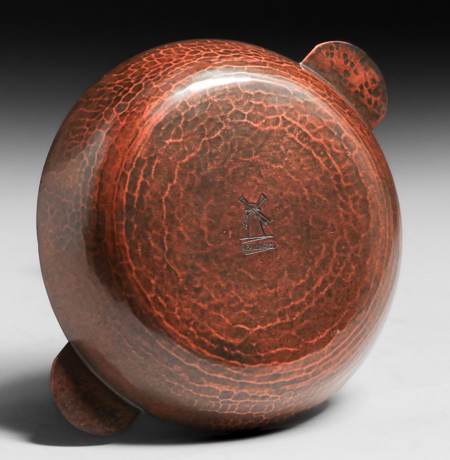 - Dirk van Erp Hammered Copper Two-Handled Bowl c1913-1914