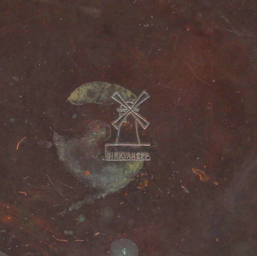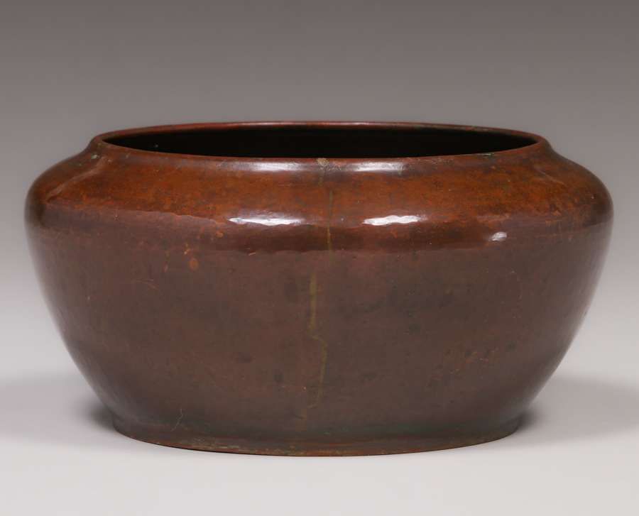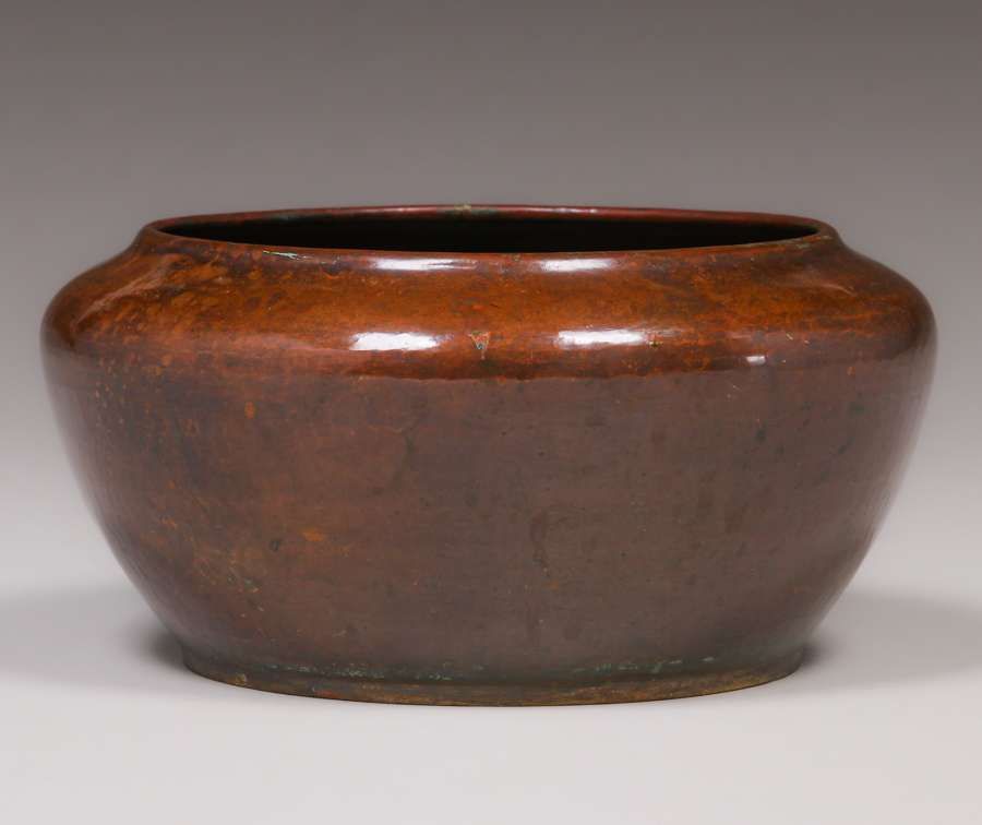 Dirk van Erp Hammered Copper Vase c1913-1914. Signed with open box, San Francisco mark. Excellent original patina. 9.25"d x 4.5"h SOLD