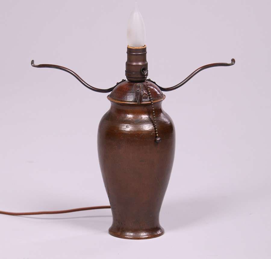 - Dirk van Erp Hammered Copper Vase converted into a Lamp