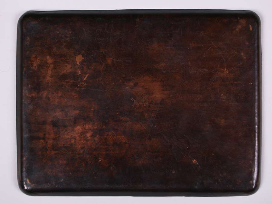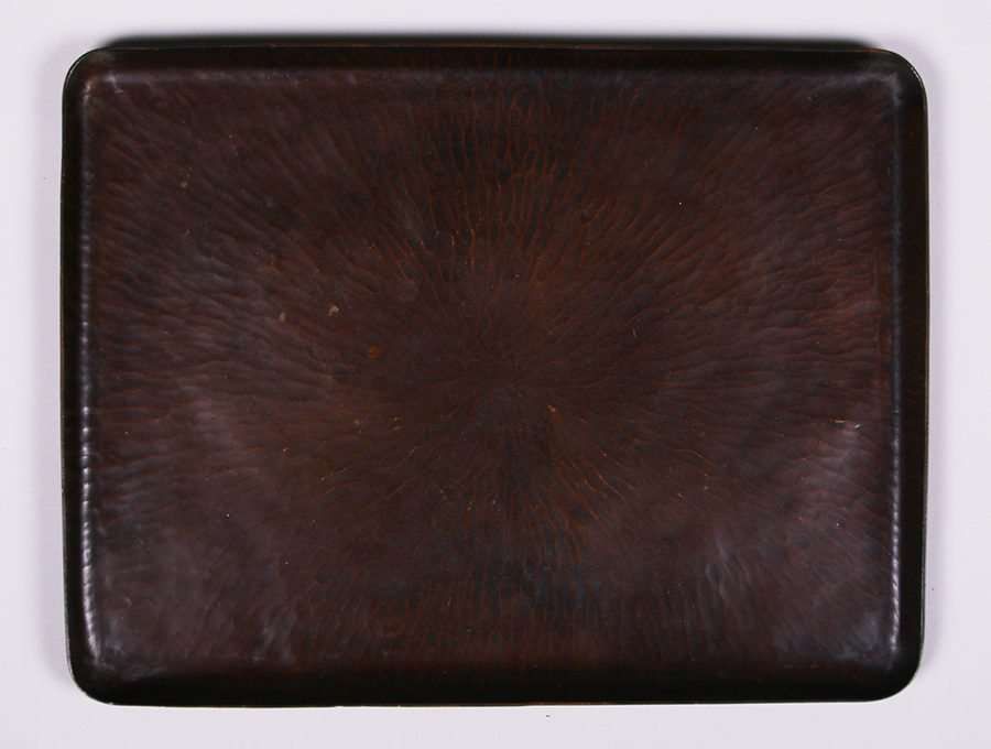 Dirk van Erp radial hammered copper rectangular tray. New patina from about 20+ years ago. Signed with closed-box mark c1911. 11.5" x 8.75" SOLD