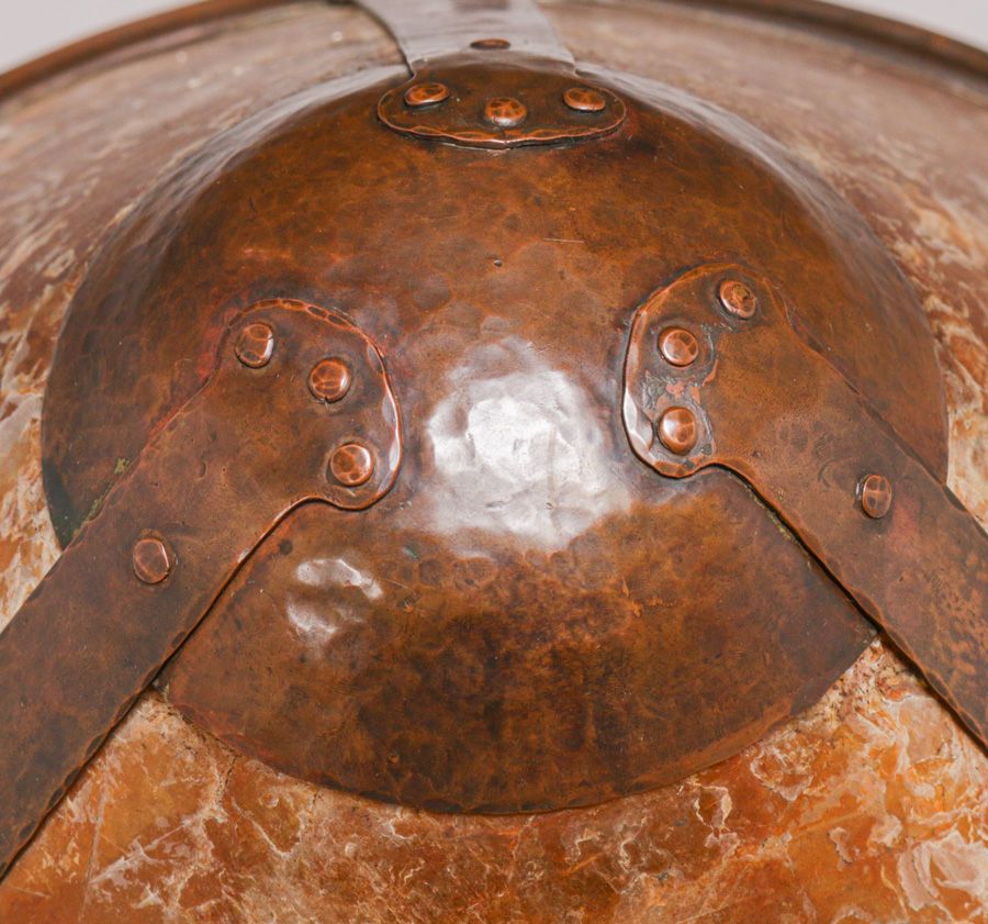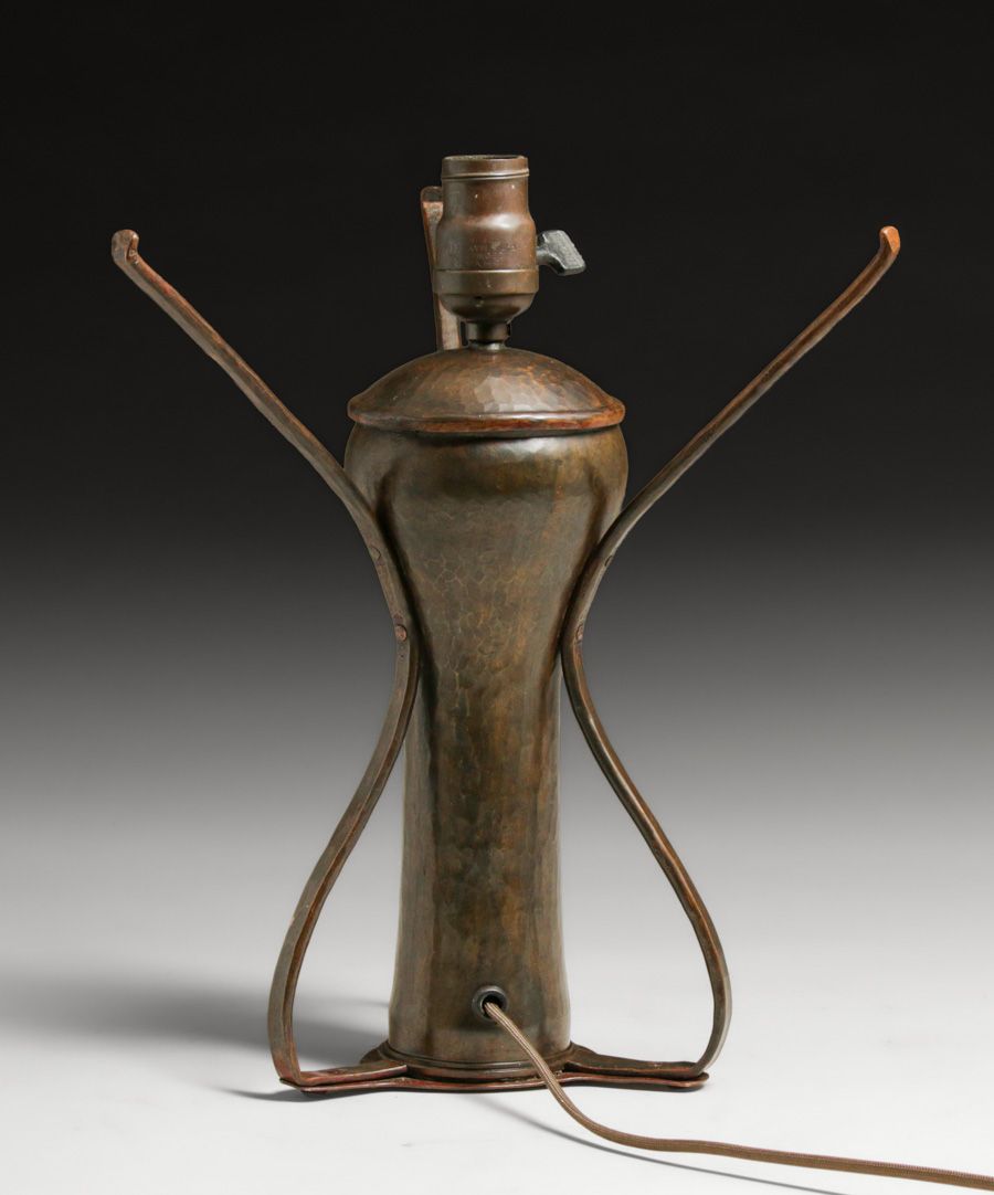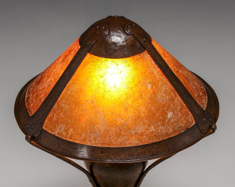 - Early Dirk van Erp Hammered Copper, Brass & Mica Shell Casing Lamp c1906