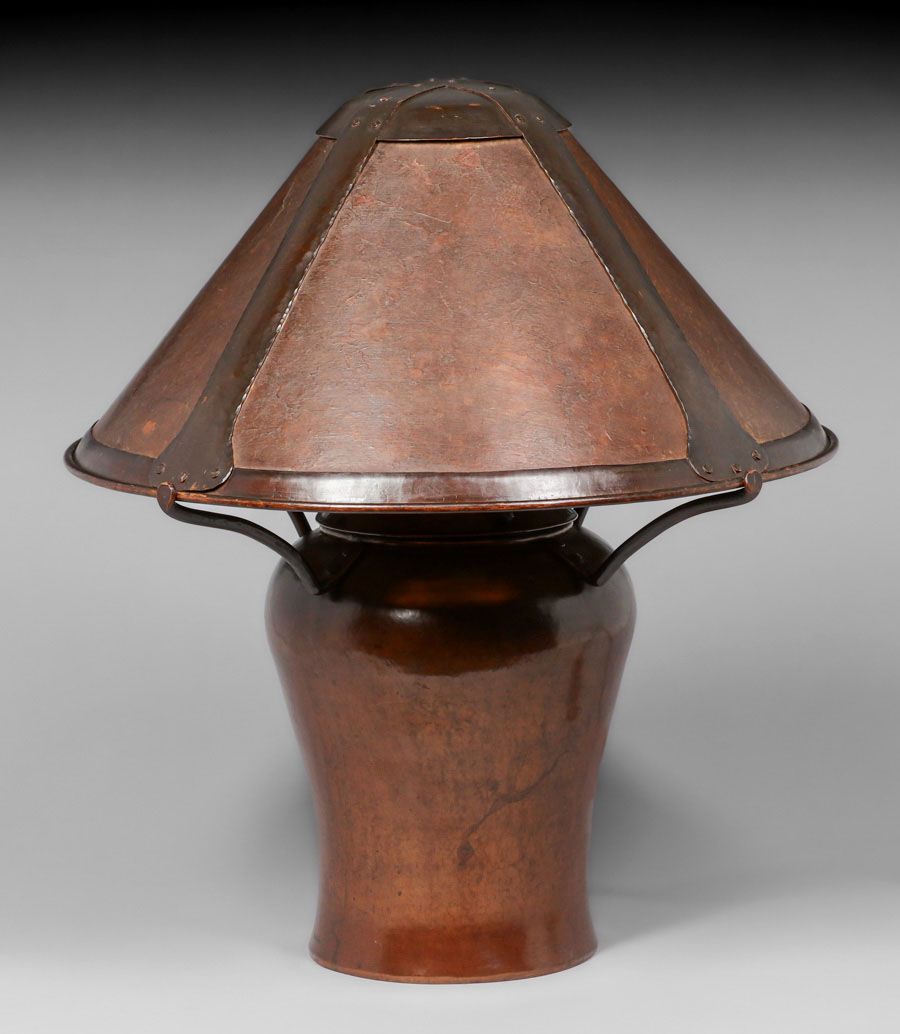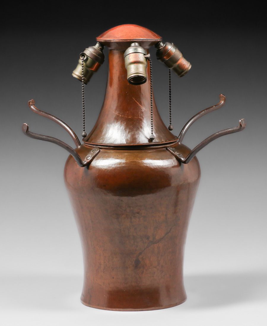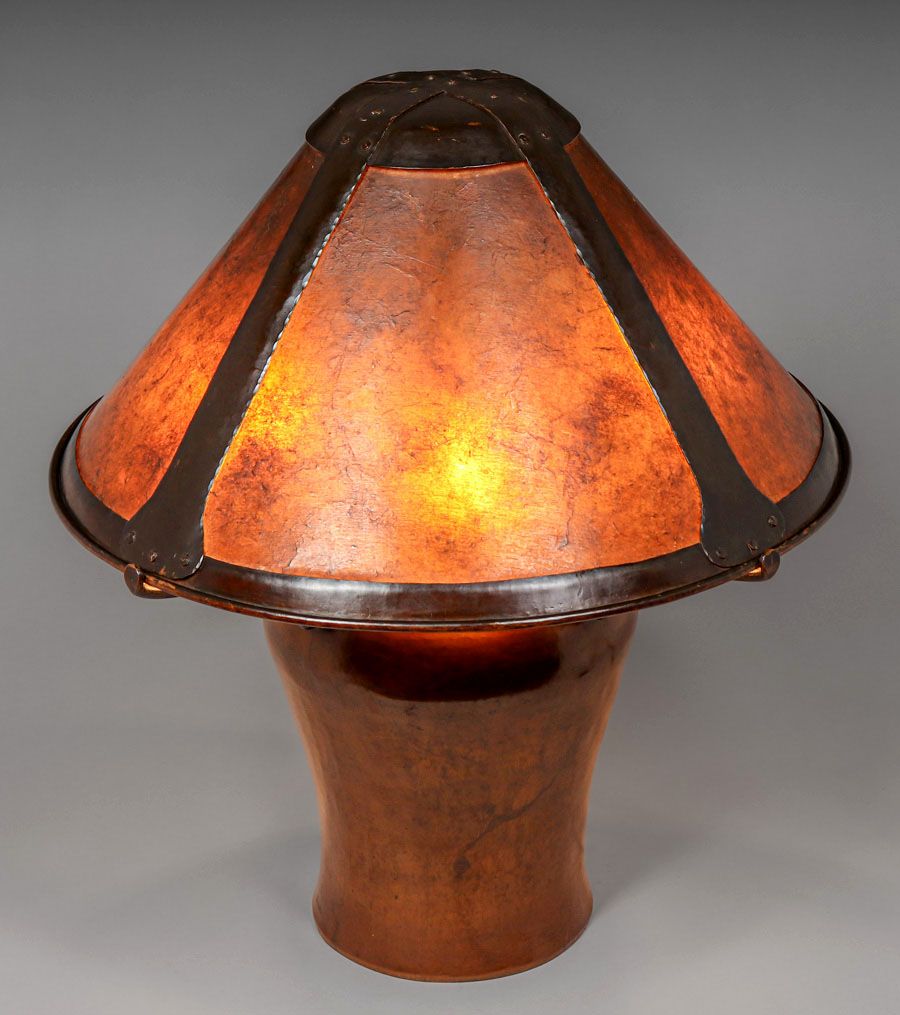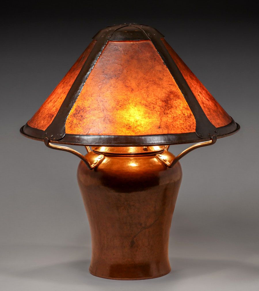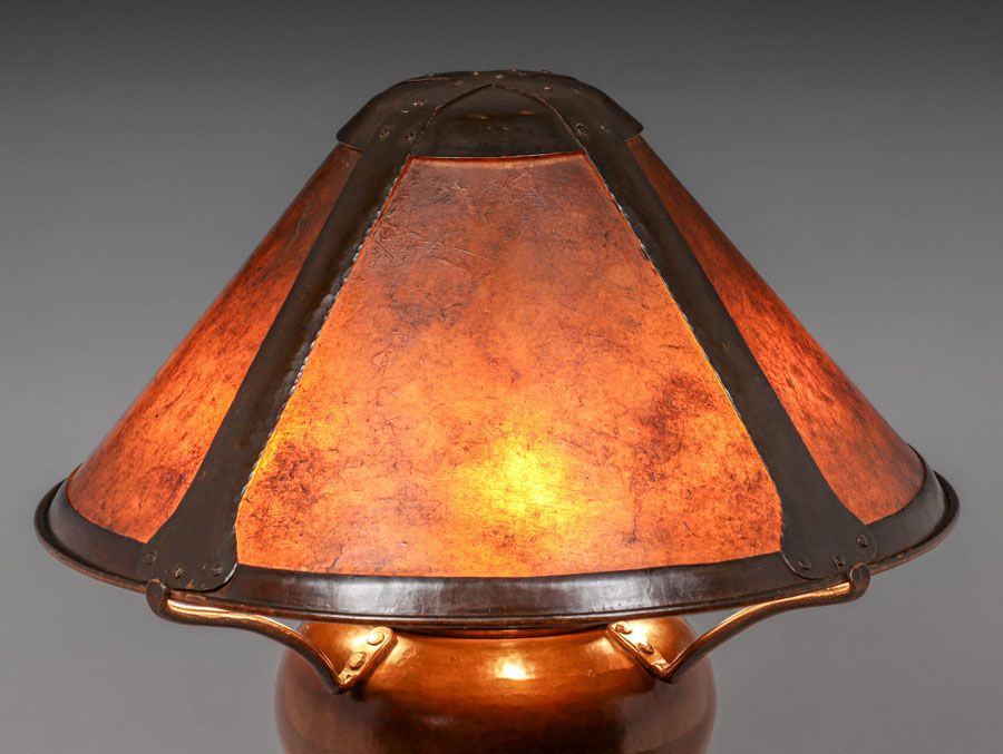 - Early Dirk van Erp Hammered Copper & Mica Milkcan Lamp c1908-1909
