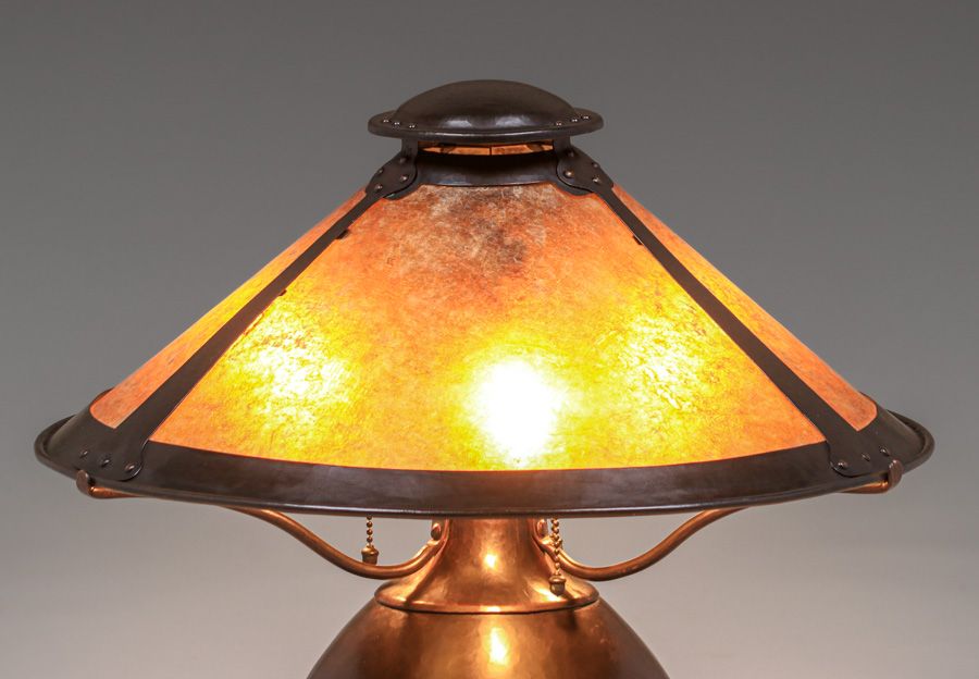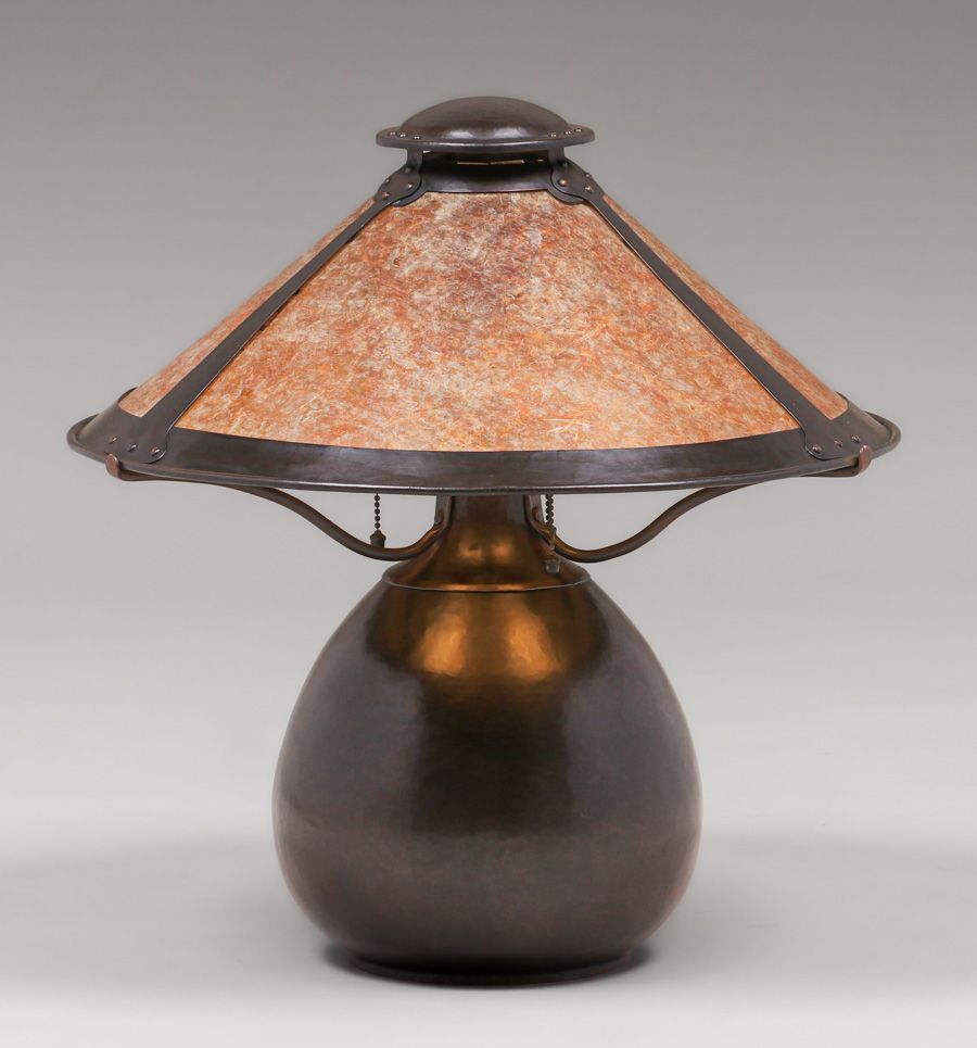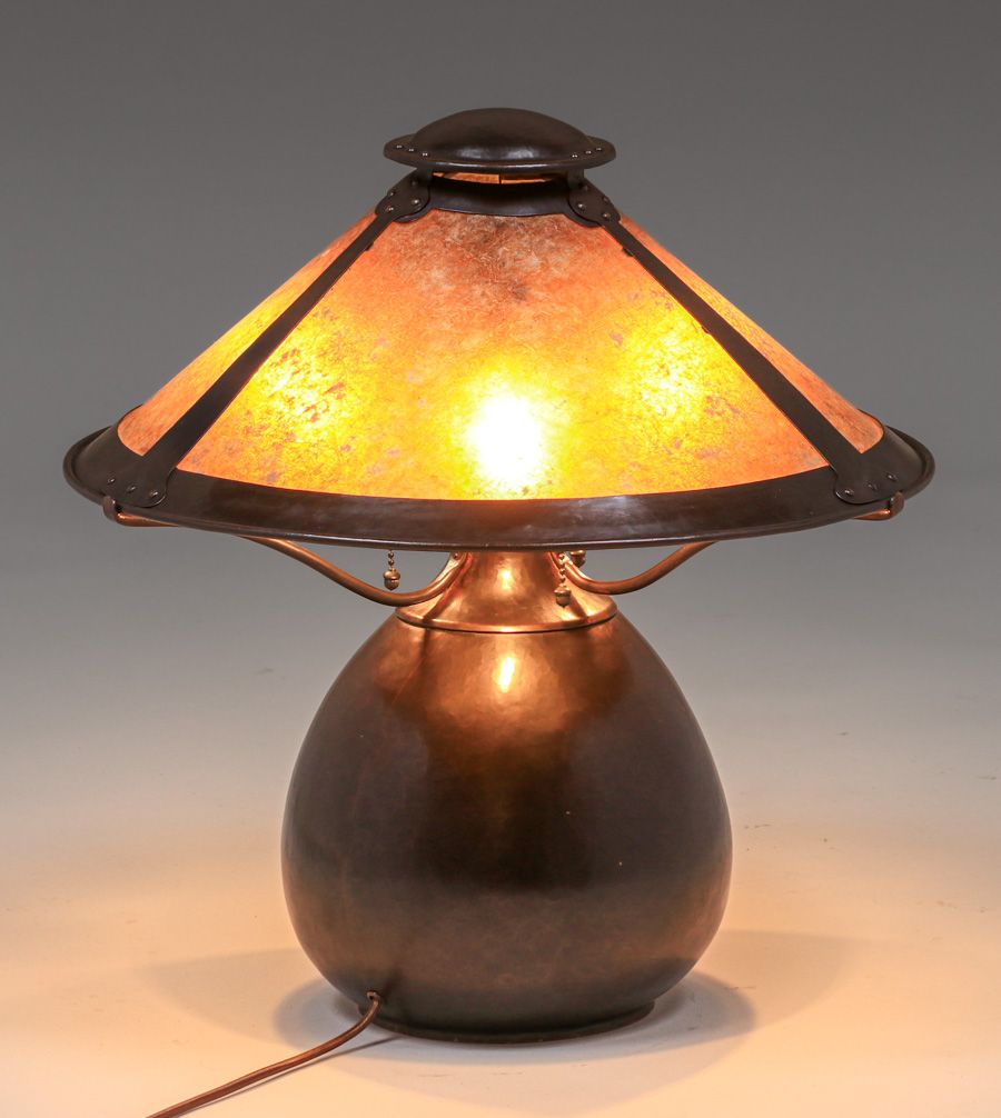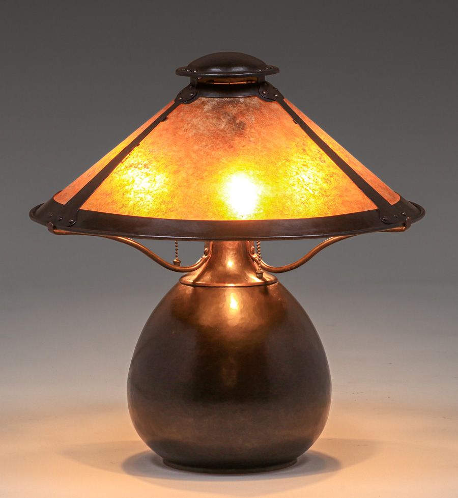 - Early Dirk van Erp - Wiliam van Erp Hammered Copper & Mica Bulbous Lamp c1910