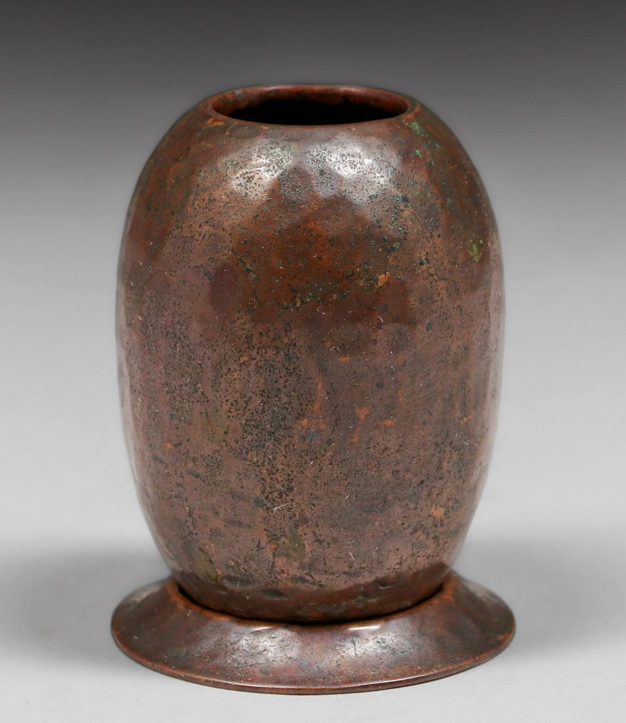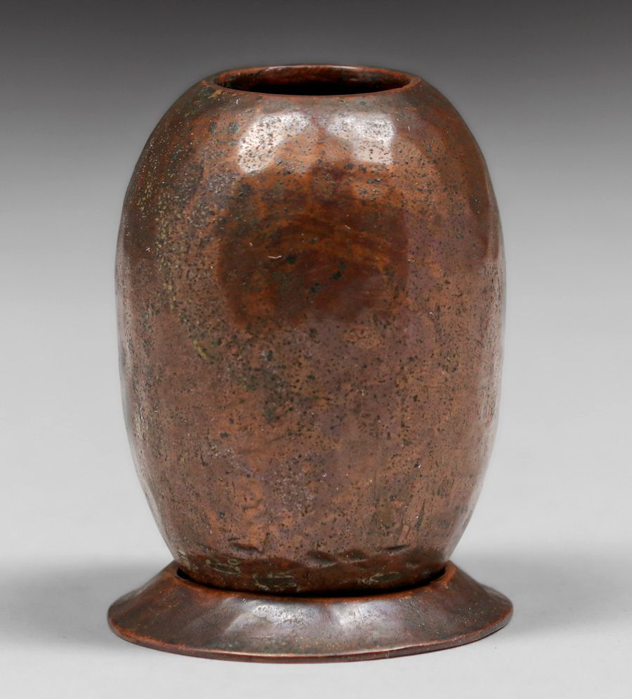- Early Miniature Dirk van Erp Hammered Copper Vase & Stand c1909