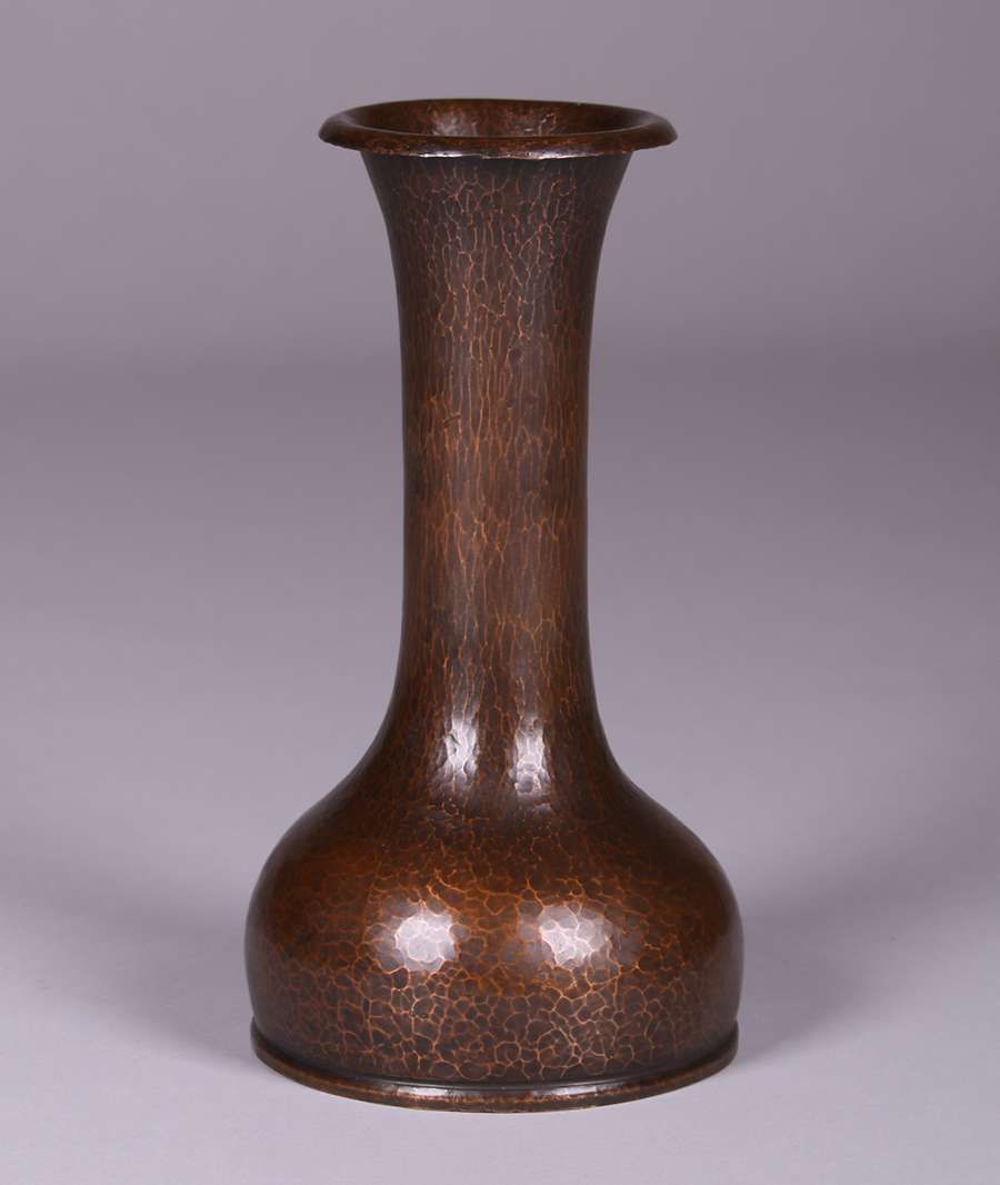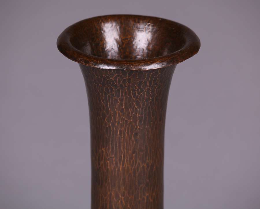Early unsigned Dirk van Erp hammered copper tall vase. Excellent new patina. 11.25"h SOLD