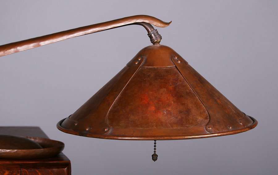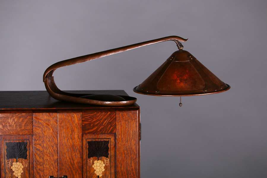 - Extremely rare Dirk van Erp hammered copper & mica cobra lamp c1909.