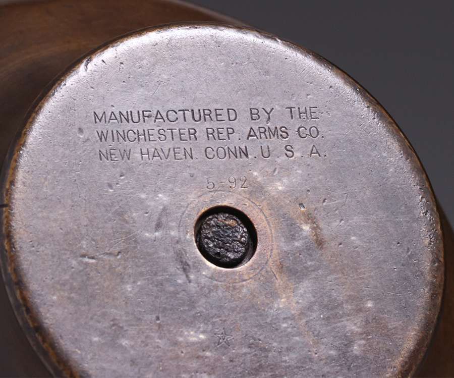 Large Dirk van Erp Hammered Brass Shell Casing Vase c1902-1906. Marked "Winchester Rep. Arms Co New Haven CONN 5-92". Excellent new patina. 7"h x 10"d SOLD