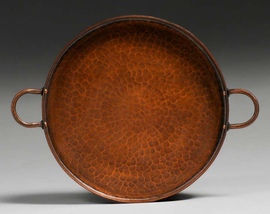 - Small Dirk van Erp Hammered Copper Two-Handled Tray c1915