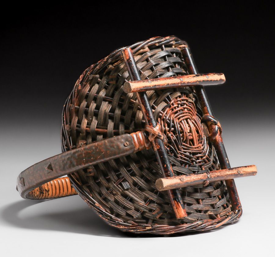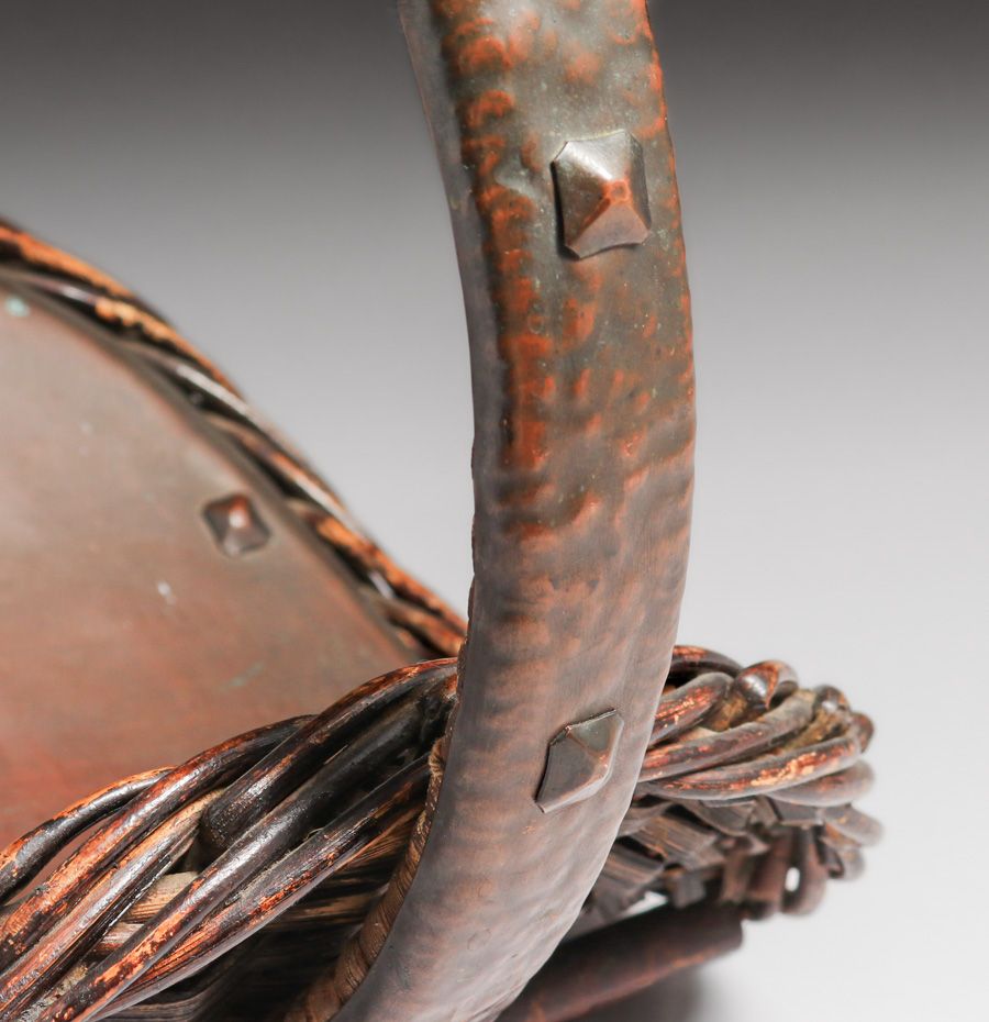 - Small Dirk van Erp Willow Log Basket Hammered Copper Warty Handle & Copper Liner c1917-1920