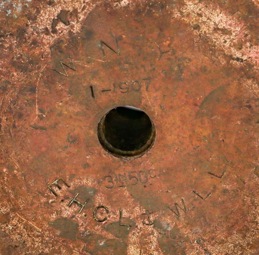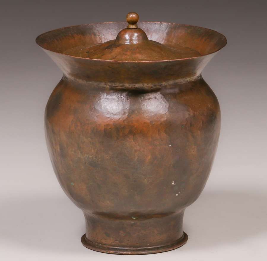Unusual Dirk van Erp Hammered Brass Shell Casing Humidor c1907-1908. Signed "WNY 1-1907". Excellent original patina. 9"h x 7.5"d SOLD
