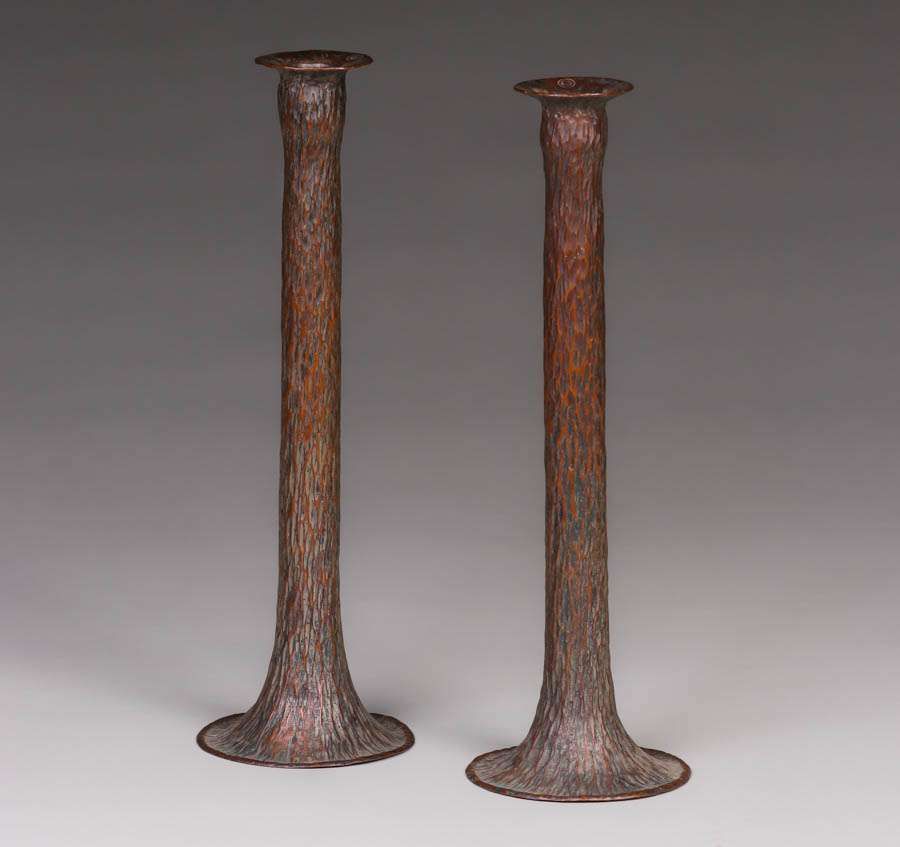 - Edward Ball Hammered Copper Candlesticks c1918-1919
