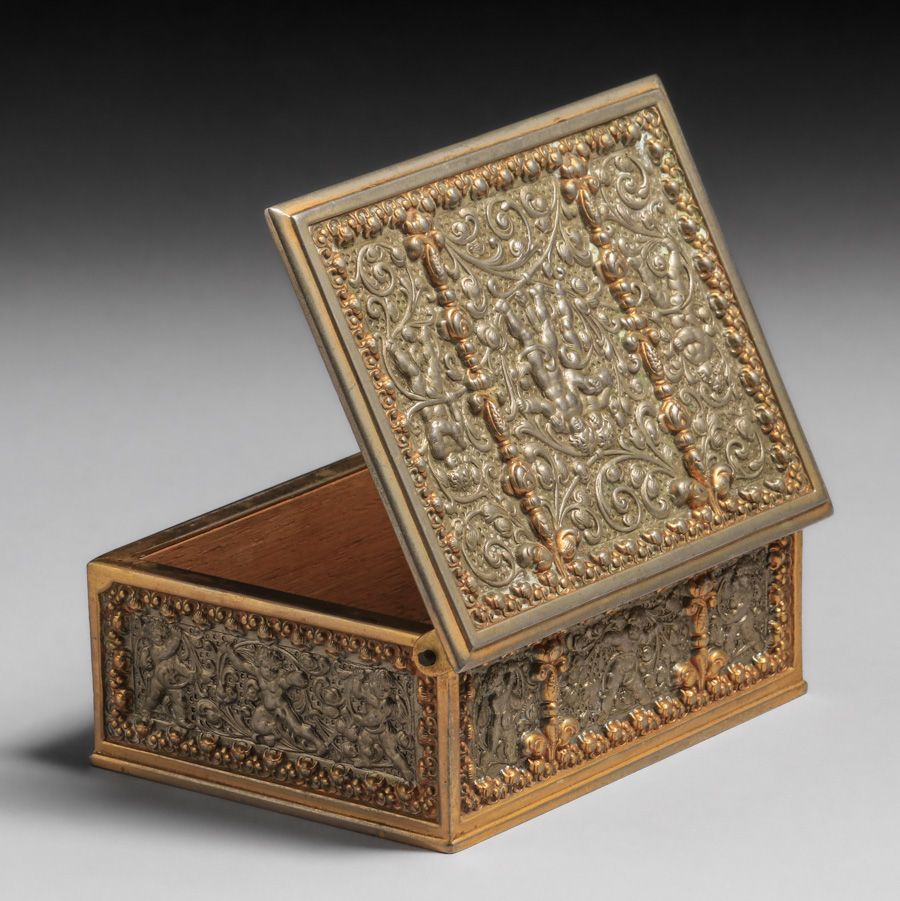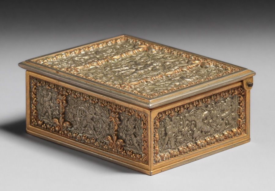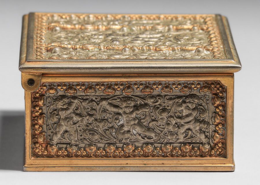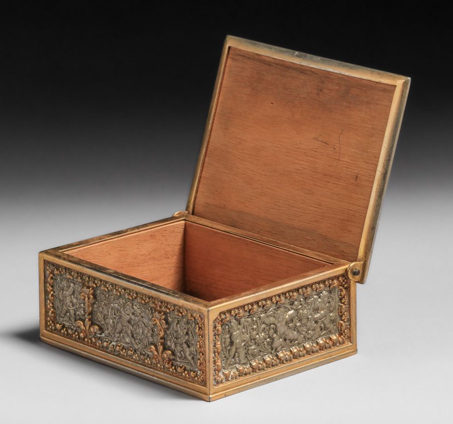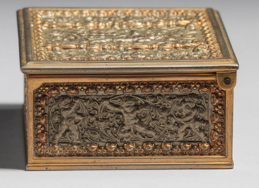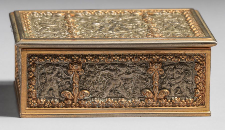 - Early Erhard & Sohne German Gilt & Silver-Plated Bronze Jewelry Box c1890s