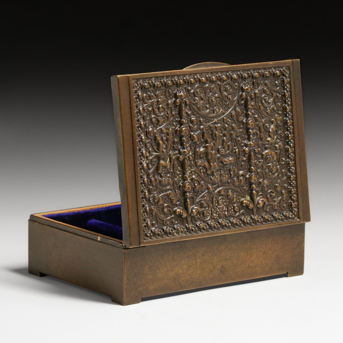 Erhard & Sohne - German Art Nouveau Brass Jewelry Box c1920. Unsigned. Excellent new patina. 6.75"w x 4.5"d x 2"h