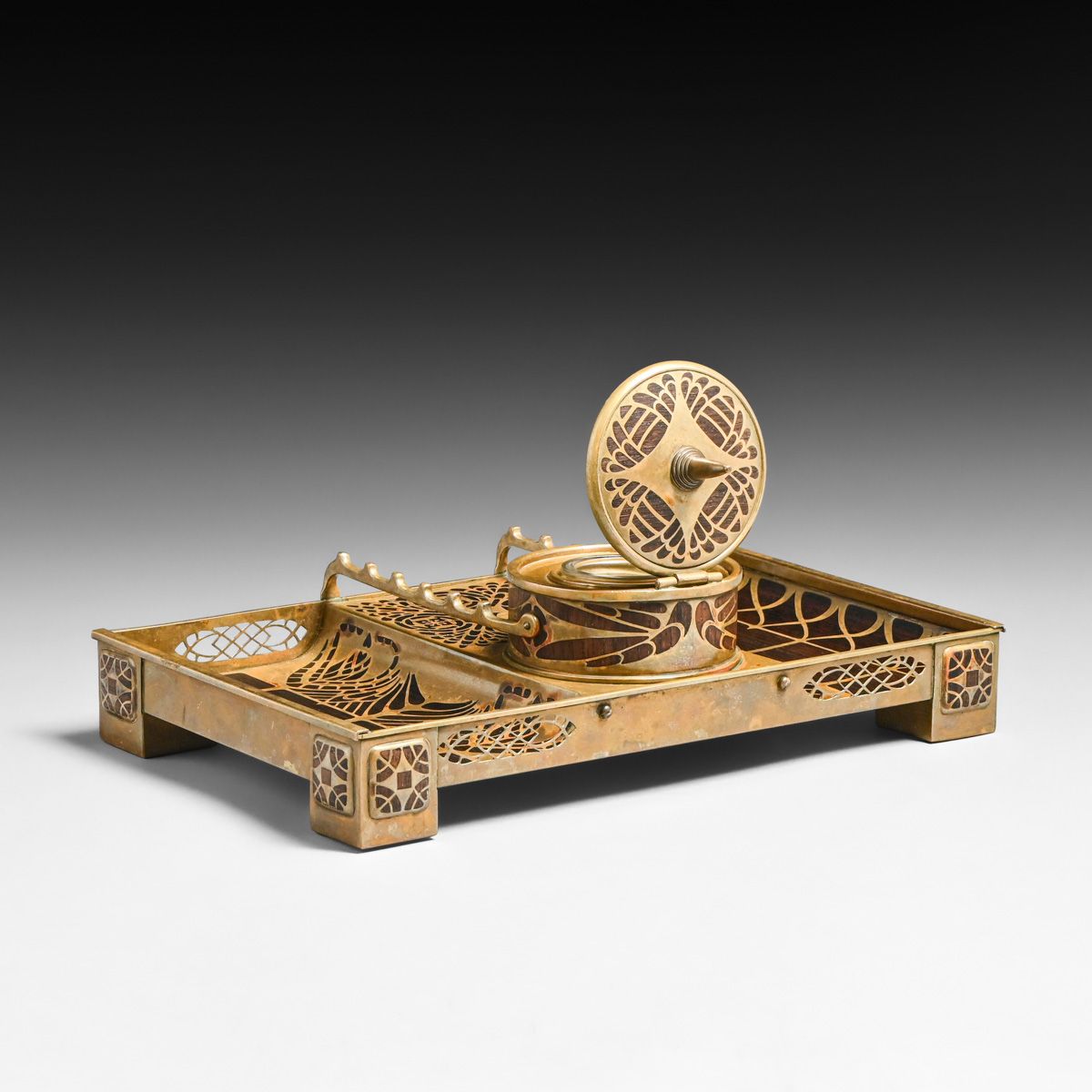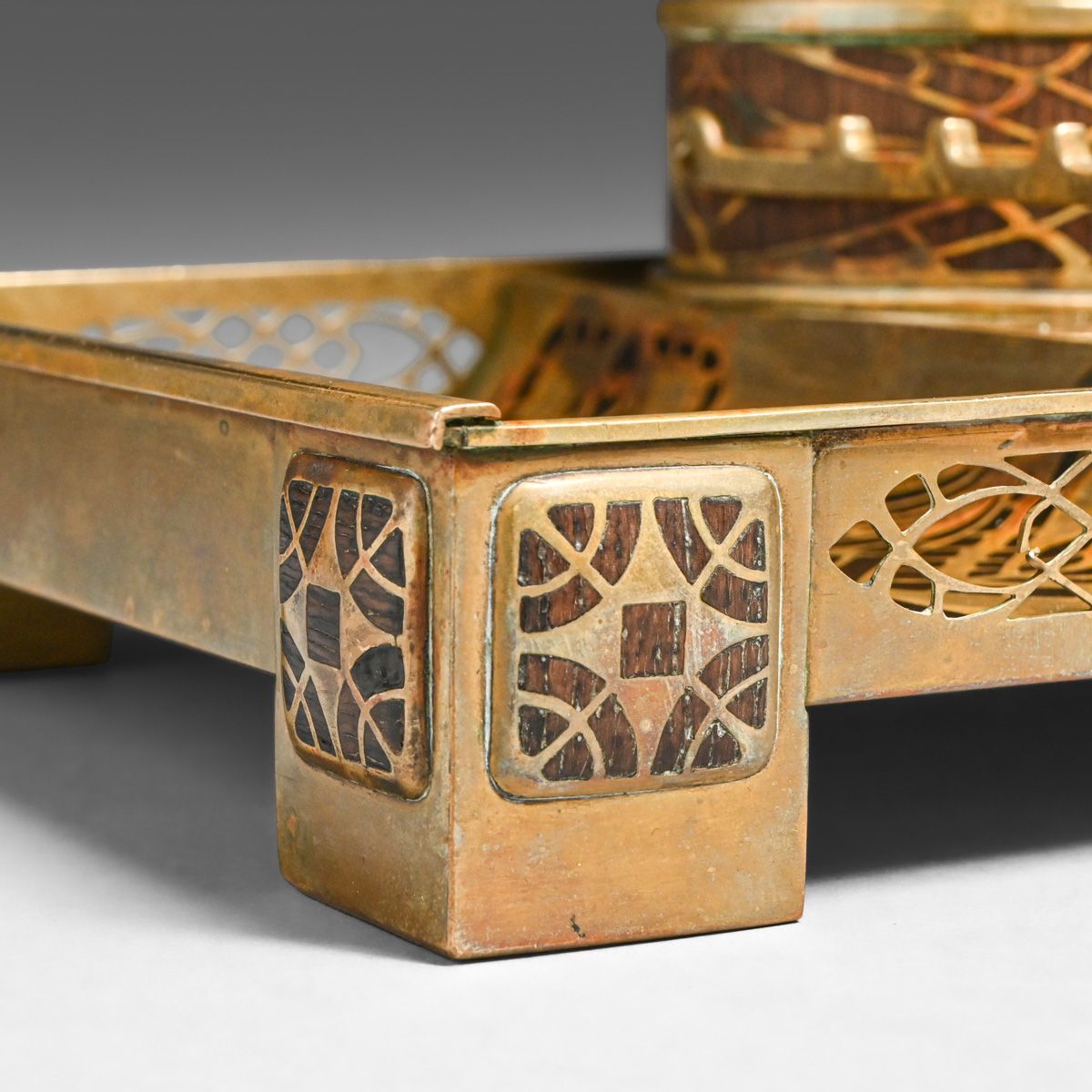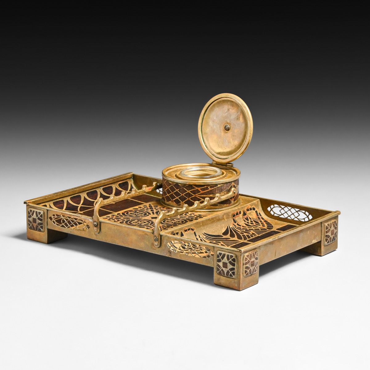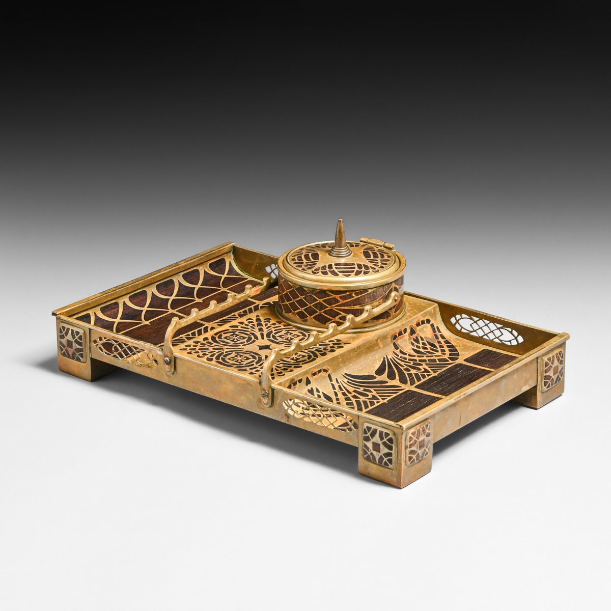 - Erhard & Sohne – German Arts & Crafts Mahogany & Brass Desk Tray Inkwell c1905