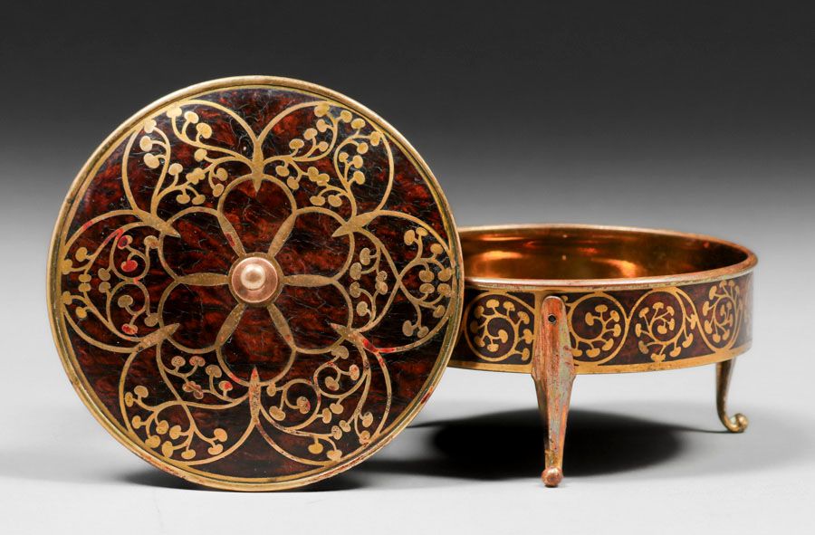 - Erhard & Sohne – German Arts & Crafts Mahogany & Brass Round Covered Box c1905