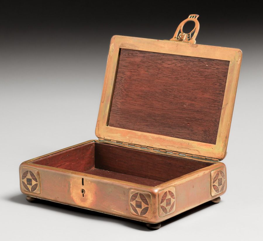 - Erhard & Sohne – German Arts & Crafts Secessionist Mahogany & Brass Box c1905
