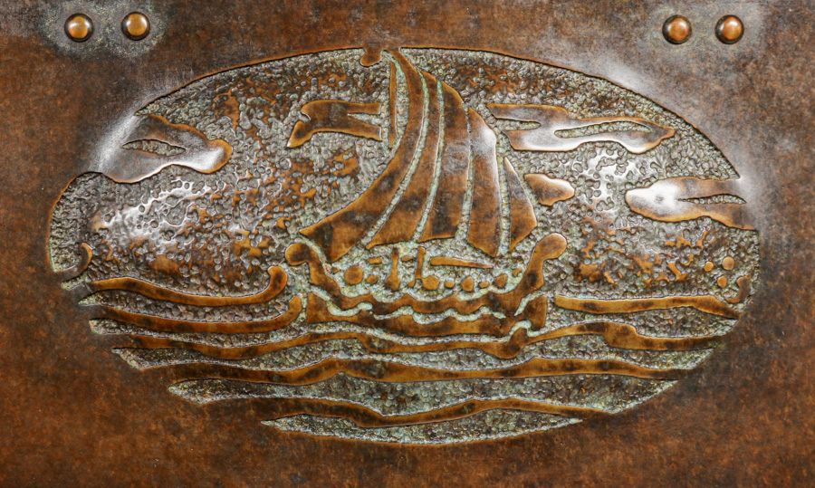 - Forest Craft Guild Acid-Etched Galleon Ship Copper Box c1910