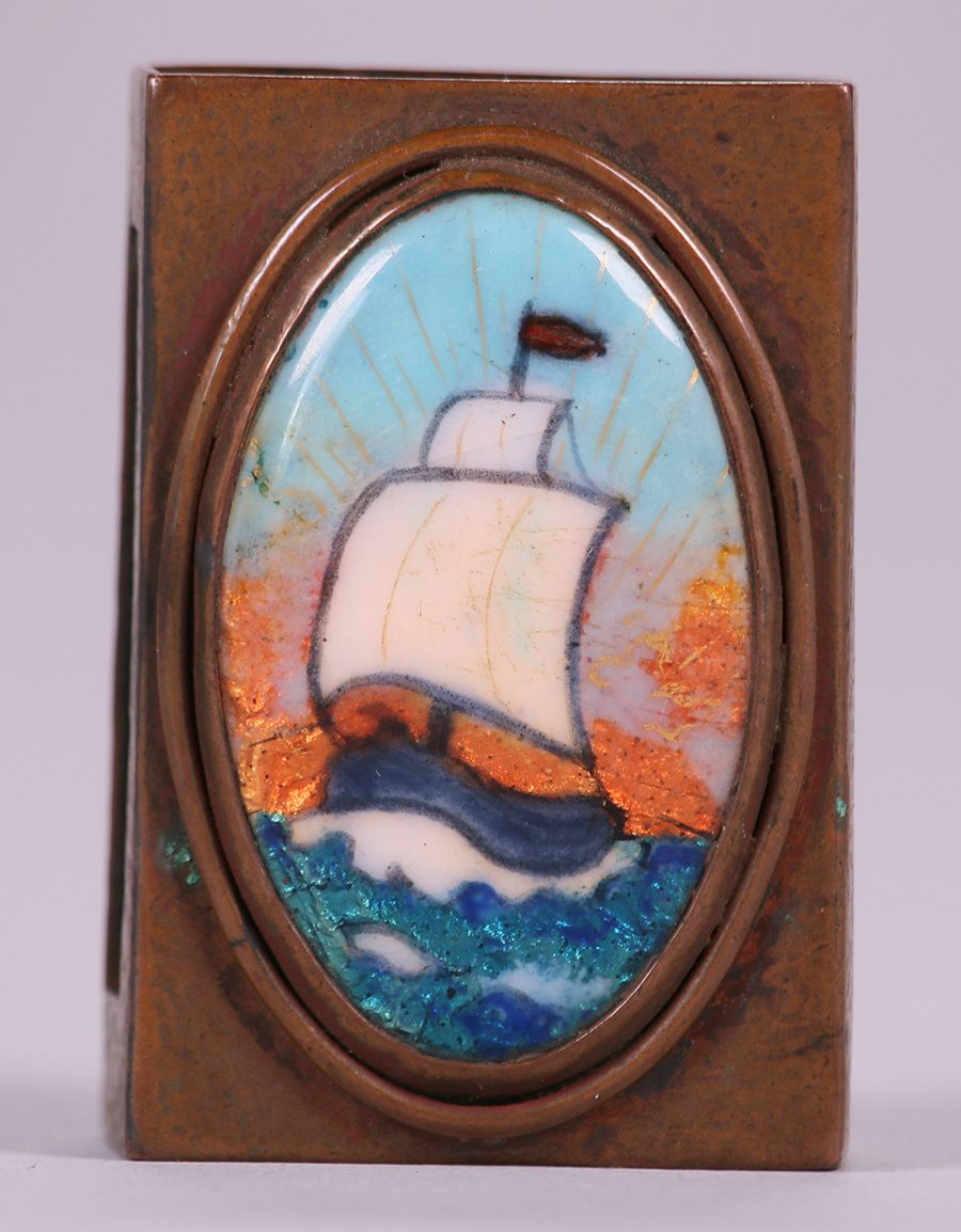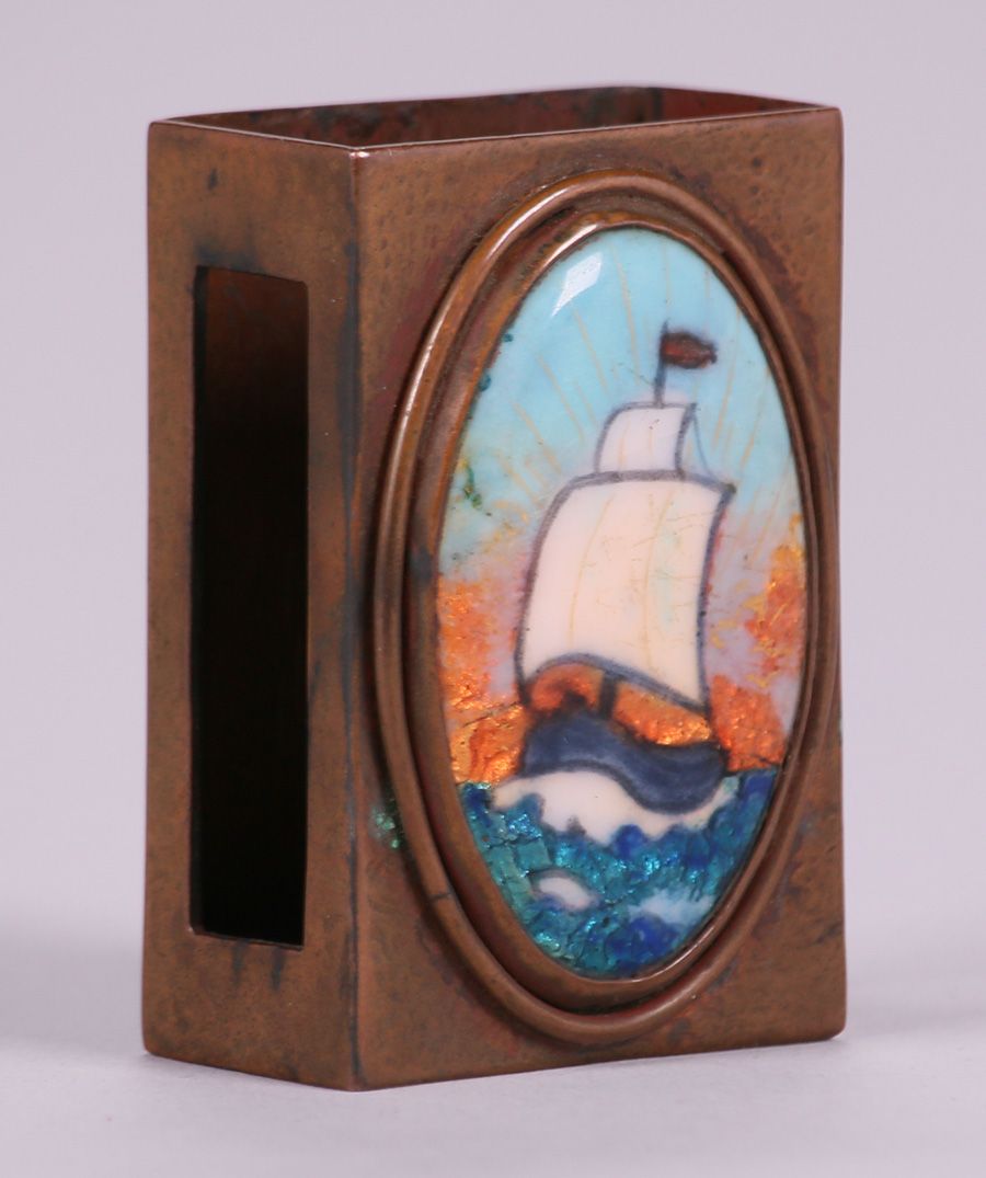 - Frank J. Marshall Hammered Copper & Enamel Matchbox Holder Boston