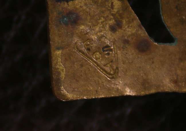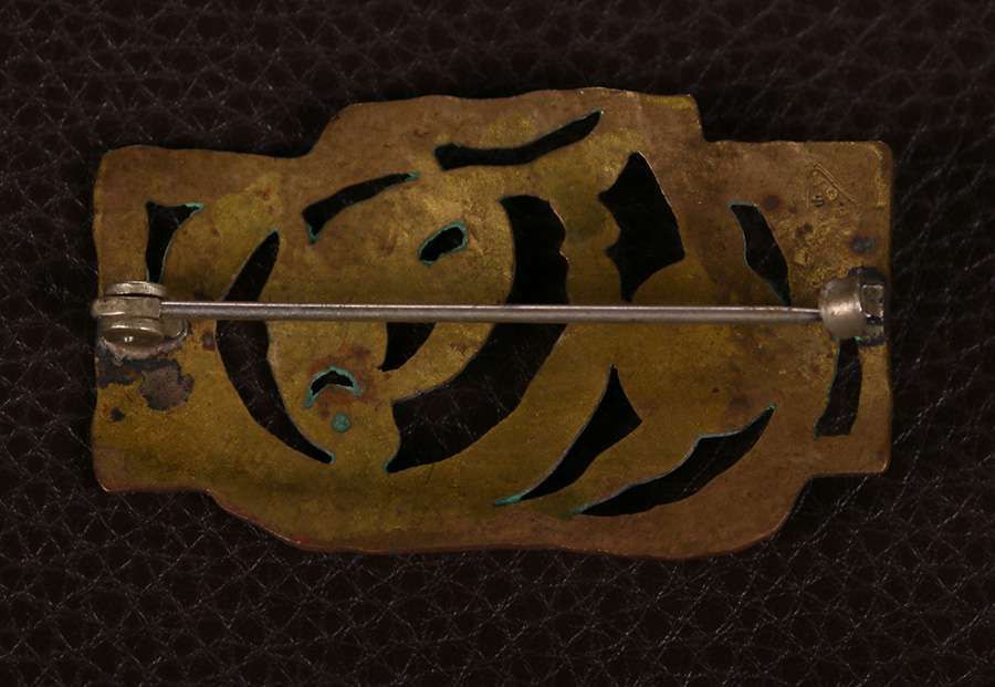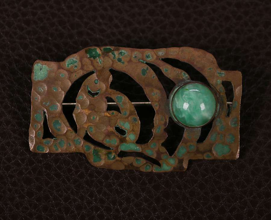 Frost hammered copper cutout brooch. Signed. Original patina. 2.25"w x 1.5" SOLD