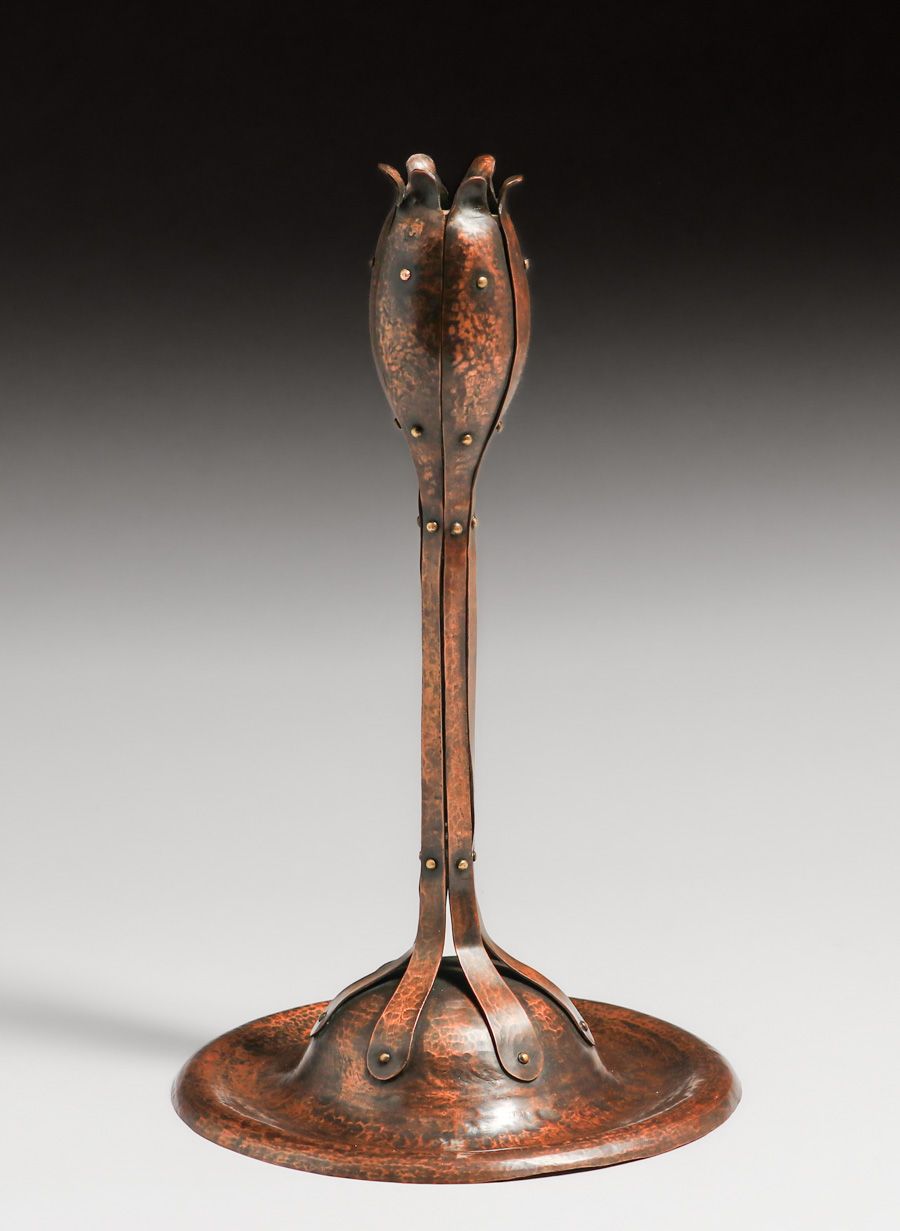 - George H. Trautmann - Chicago Hammered Copper Candlestick c1910