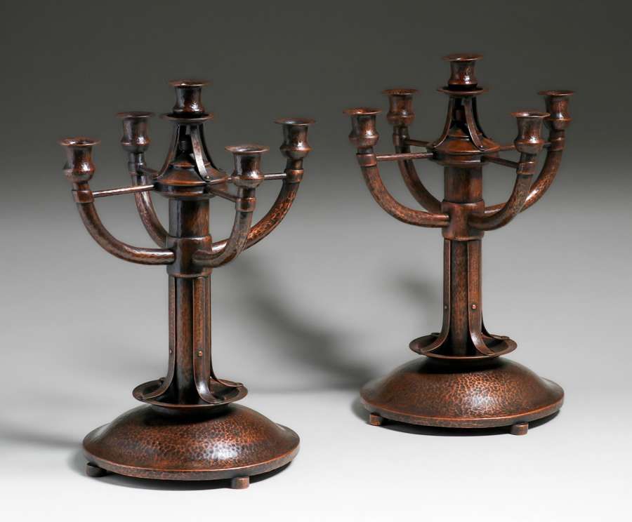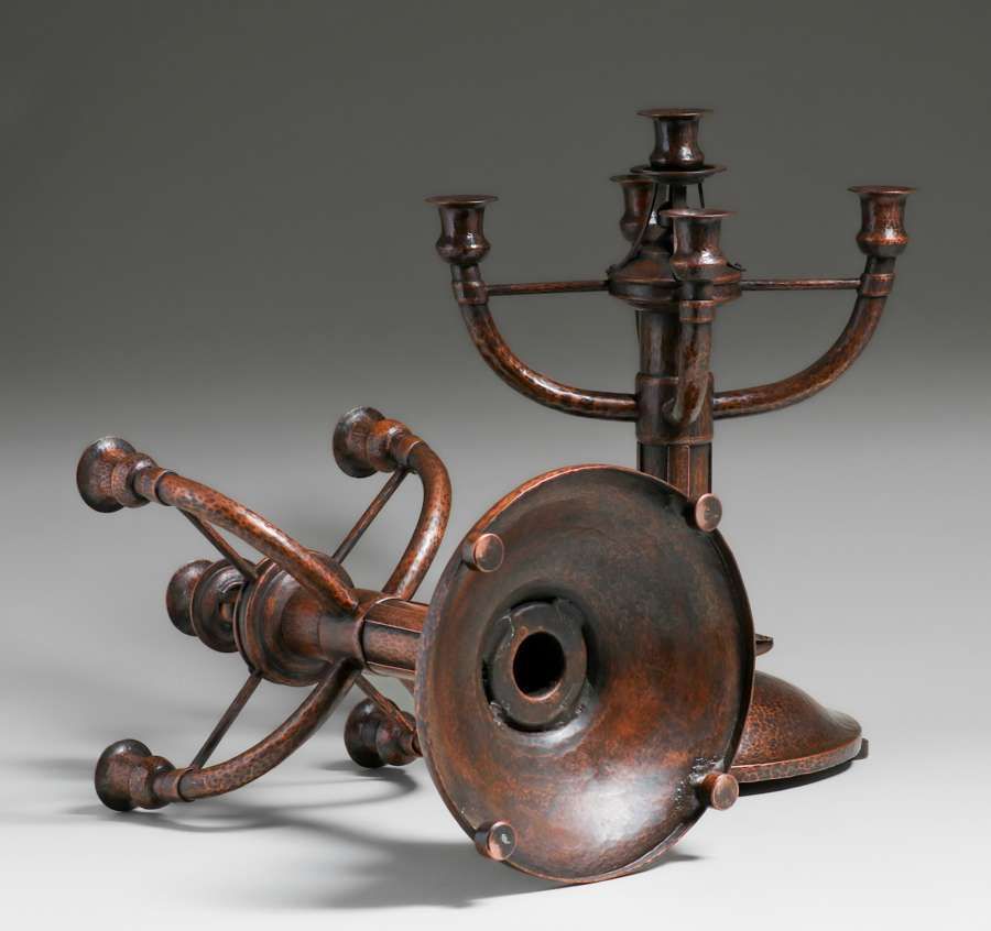 - Pair George H. Trautmann – attributed Chicago Hammered Copper Candelabras c1910