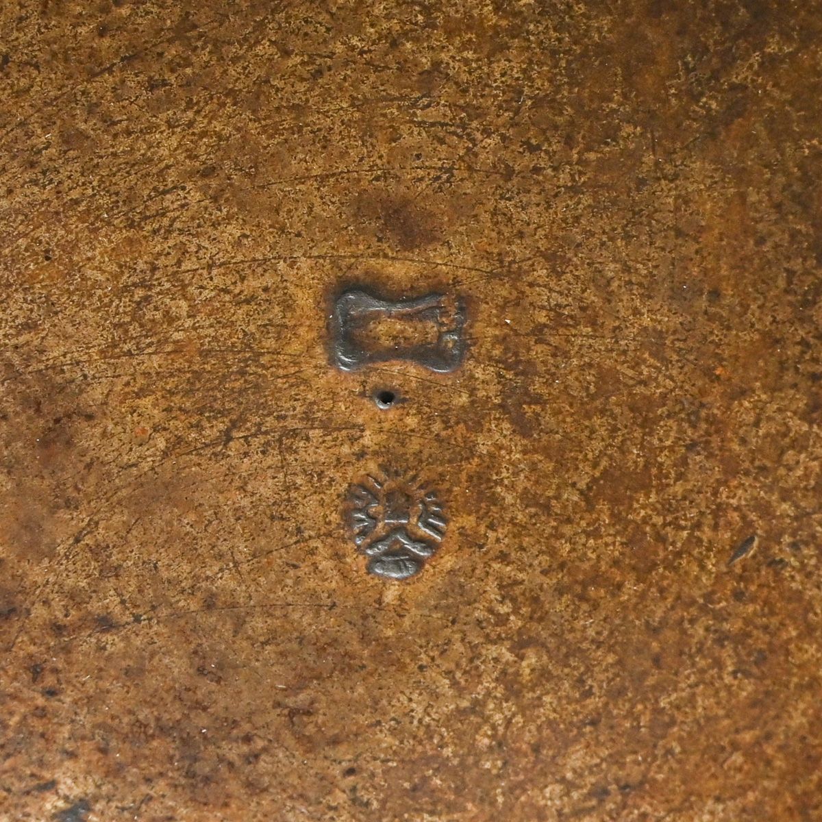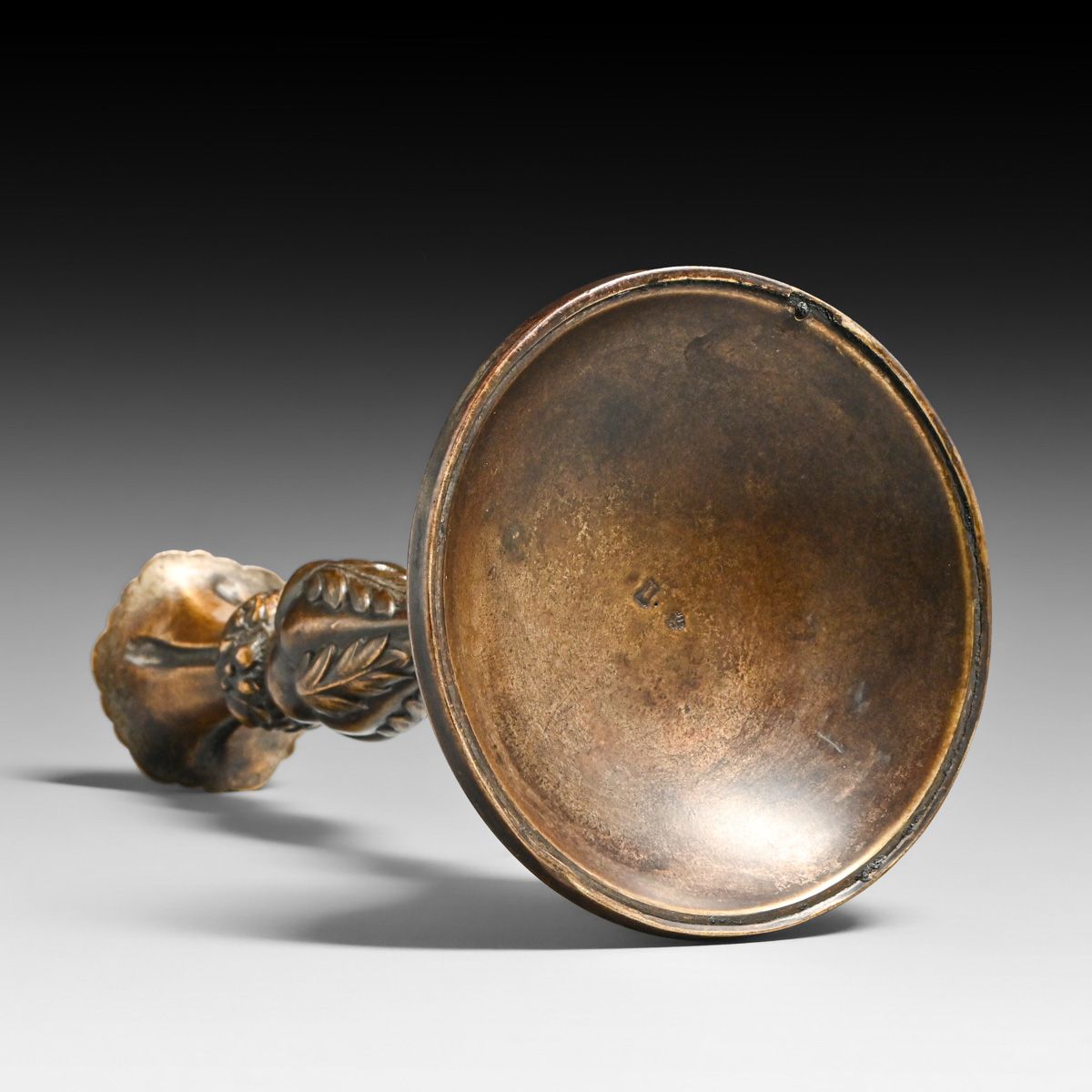 Art Nouveau Gothic Revival Candlestick c1900. Signed. Probably German signed indistinctly. Excellent new patina. 8 7/8"h x 4.75"d