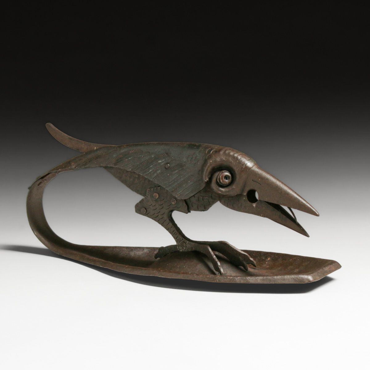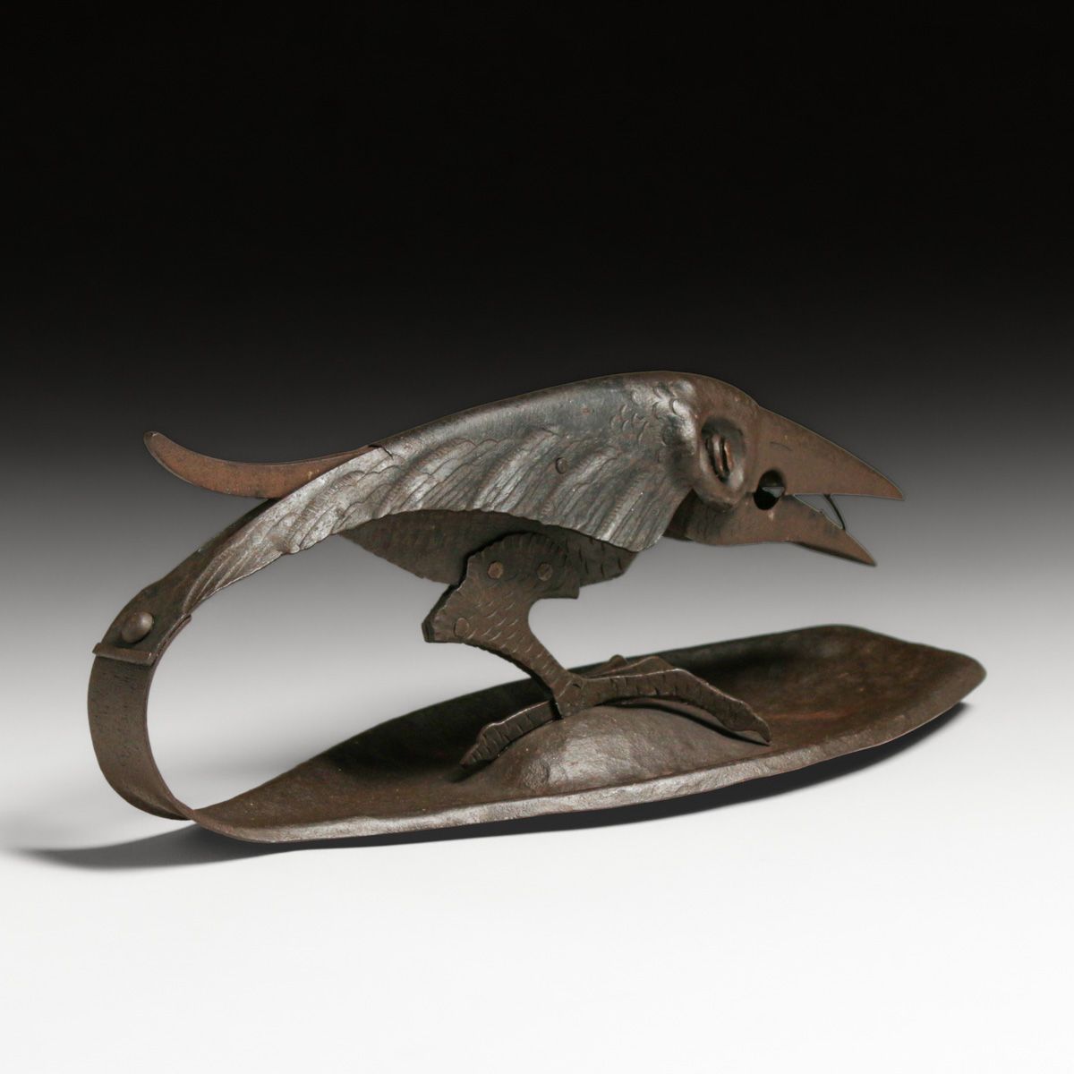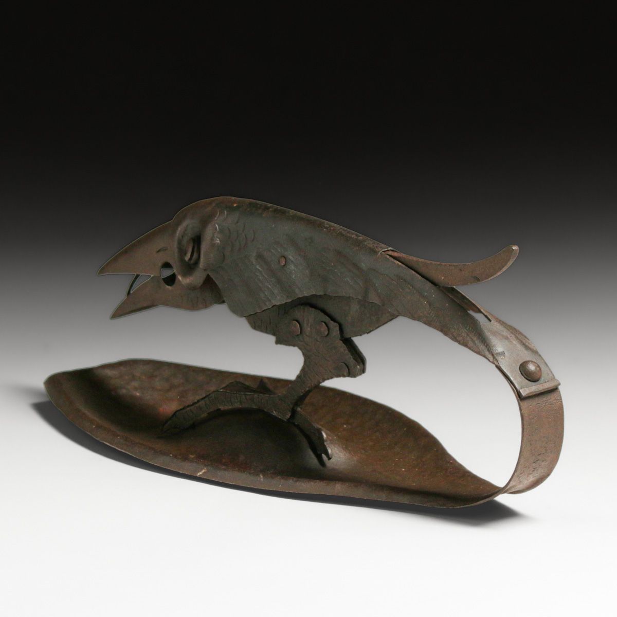 Hugo Berger - Goberg - German Secessionist Hand-Forged Raven Cigar Cutter c1905. Marked "D.R.G.M.", although not a signature it stands for German Patent Mark. Goberg used this type of signature on many of there pieces. Excellent original patina. 9.25"w x 4"w x 3.75"h