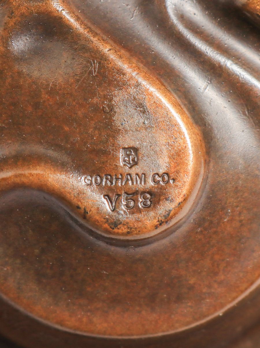Gorham Aesthetic Movement Copper Swan Soap Dish c1890s. Signed. Excellent new patina. 7.75" x 6.75"w x 1" SOLD