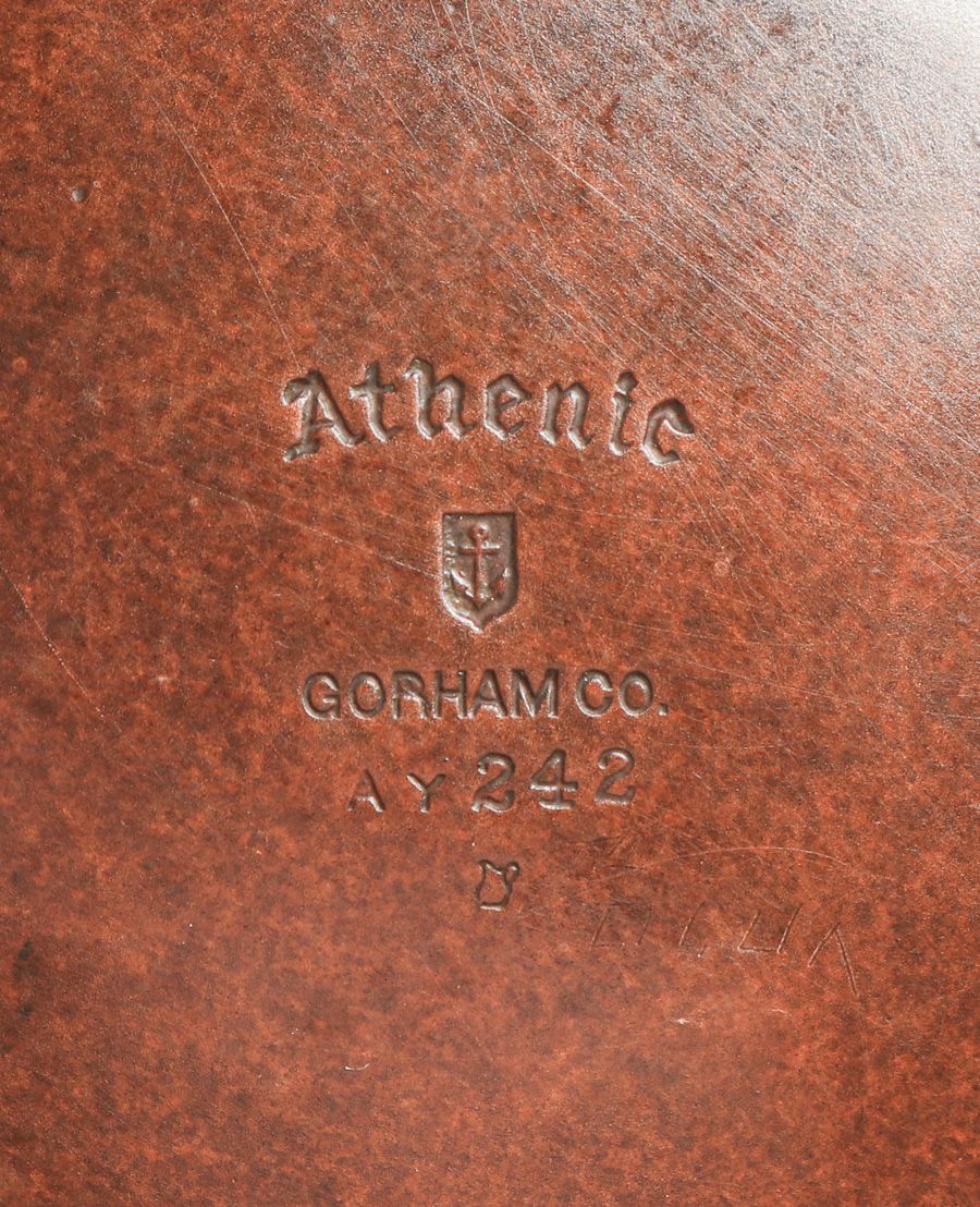 Gorham "Athenic" Copper & Silver Cutout Three-Handled Vase c1900. Signed. Excellent new patina. 7.5"h x 8.75"d SOLD