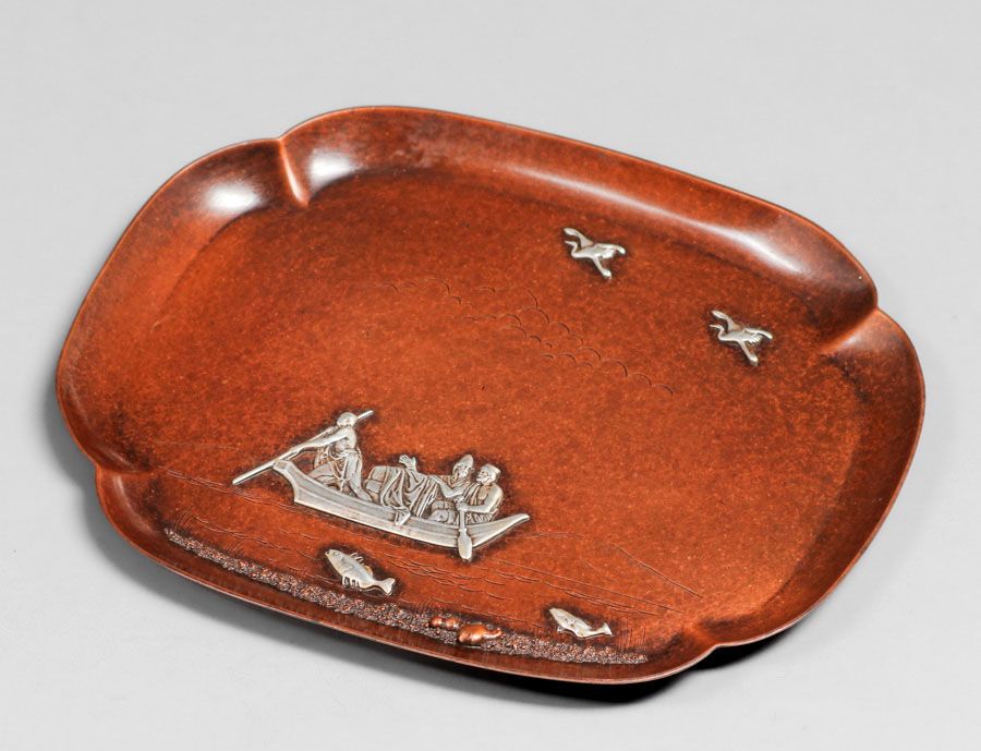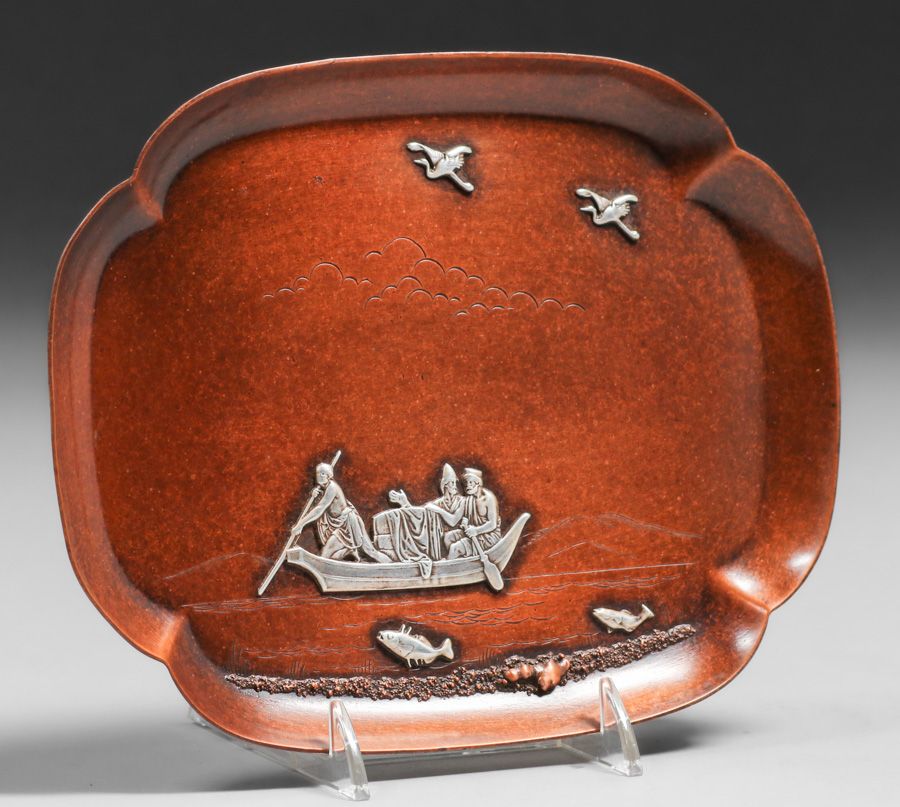 - Gorham & Co Aethestic Movement Mixed Metal Tray c1890s