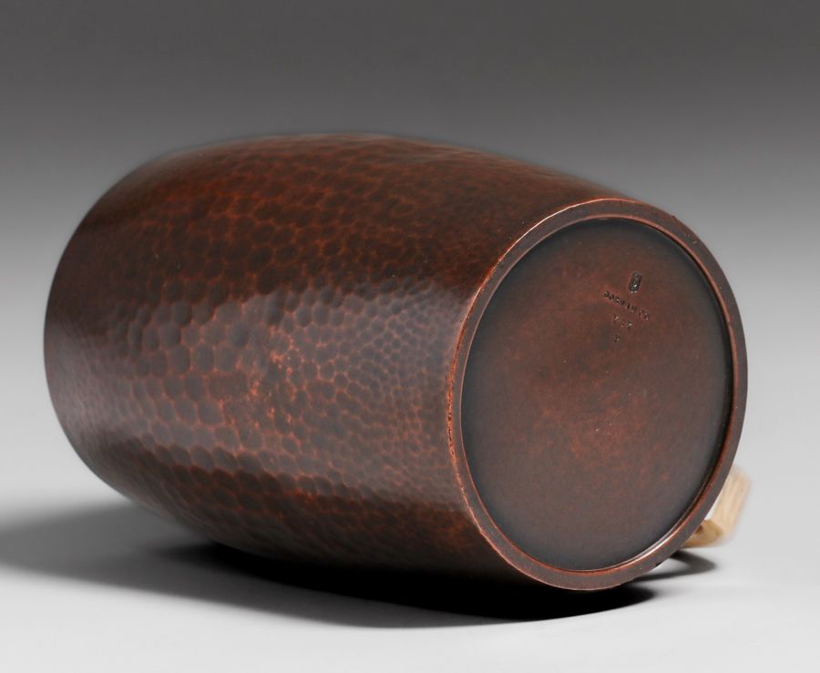 - Gorham & Co Hammered Copper, Silver & Fossilized Handle Mug c1910