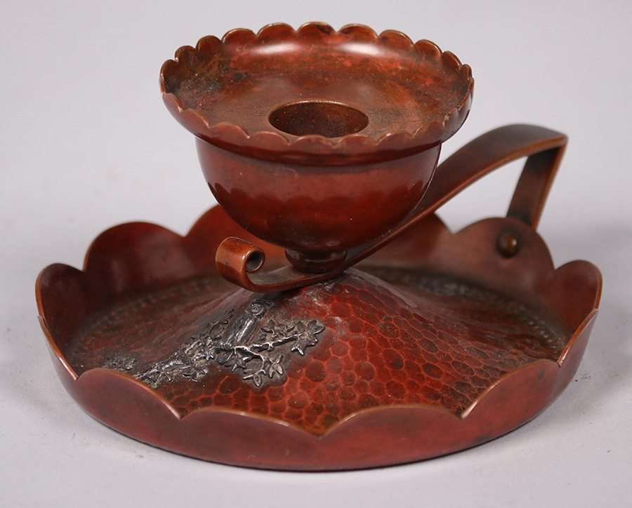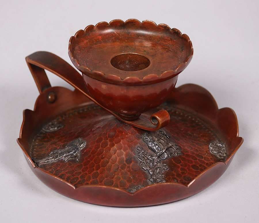 - Gorham Hammered Copper & Silver Candlestick c1900