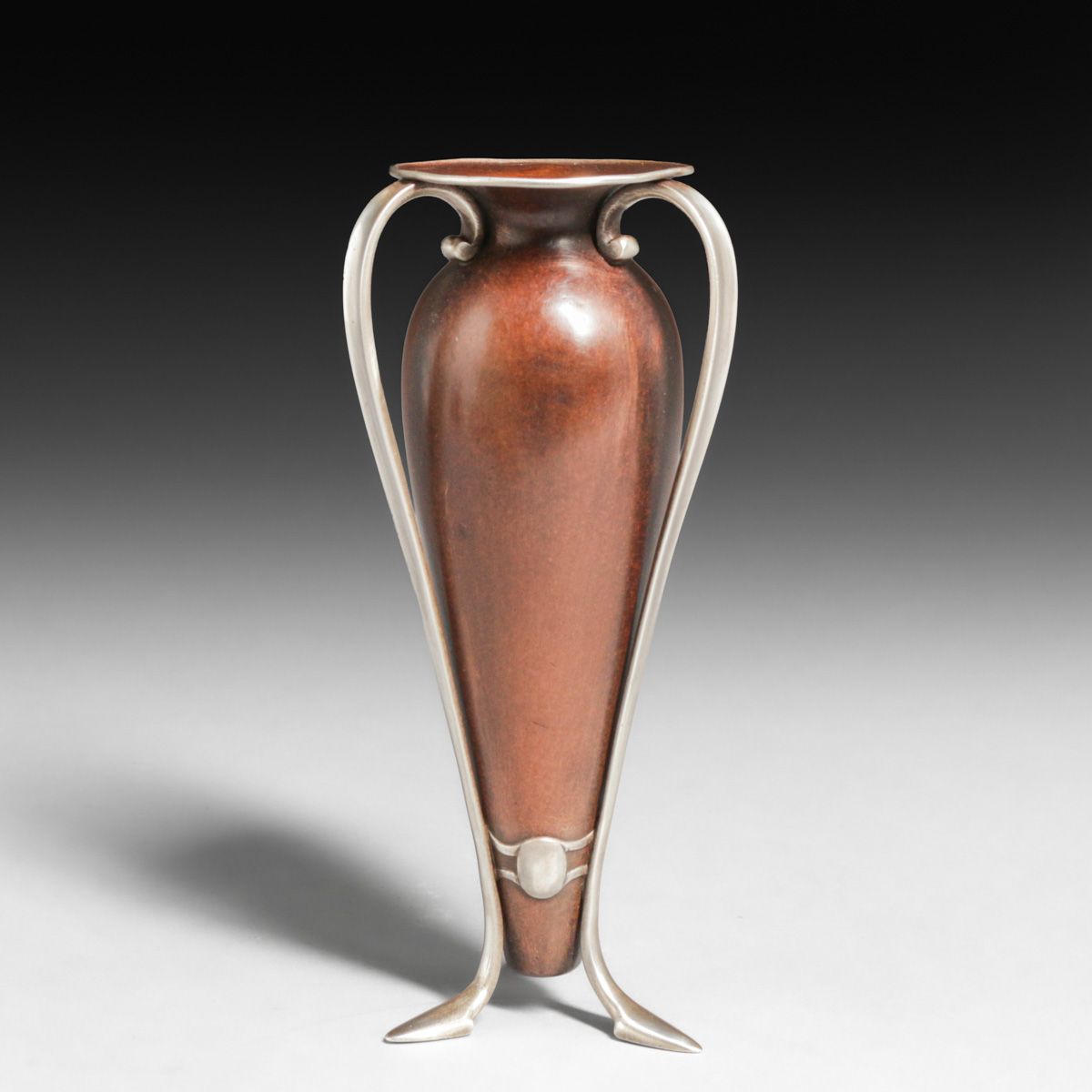 - Gorham Copper & Sterling Silver Three-Handle Vase c1900
