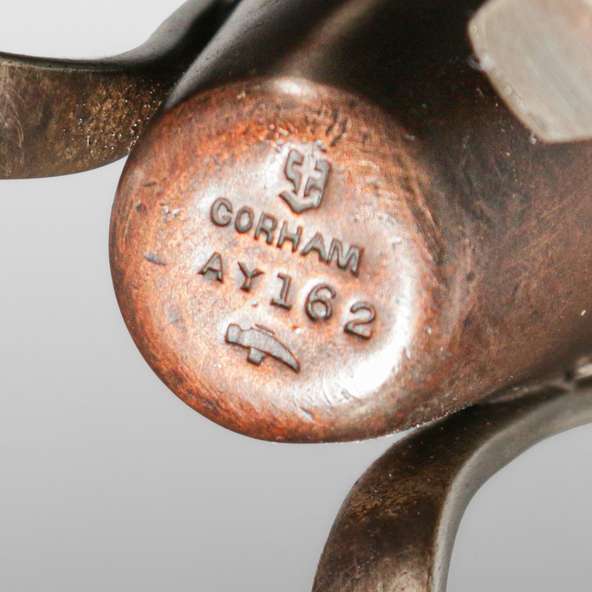 Gorham Copper & Sterling Silver Three-Handle Vase c1900. Signed. Excellent new patina. 6 5/8"h x 3"d