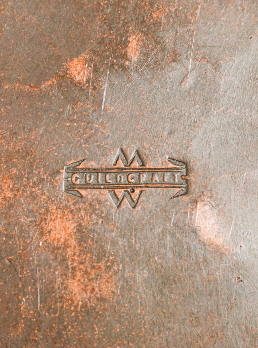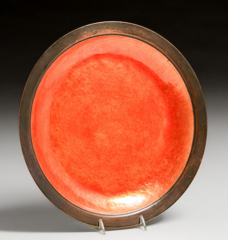 Guildcraft Hammered Copper & Enamel Tray c1930s. Signed. Excellent original patina. 12"d