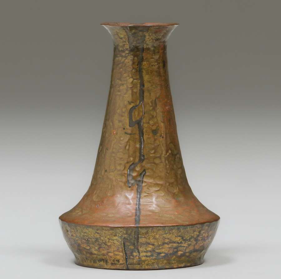Harry Dixon Hammered Brass Vase c1920s. Signed. Excellent original patina. 5"h x 3.25"d SOLD
