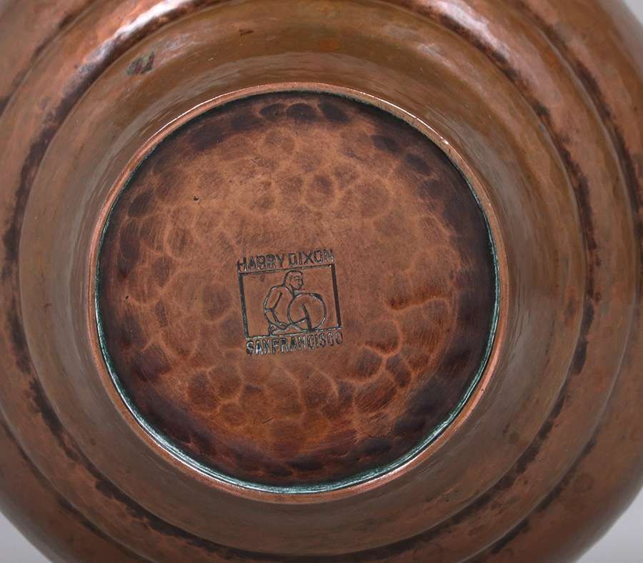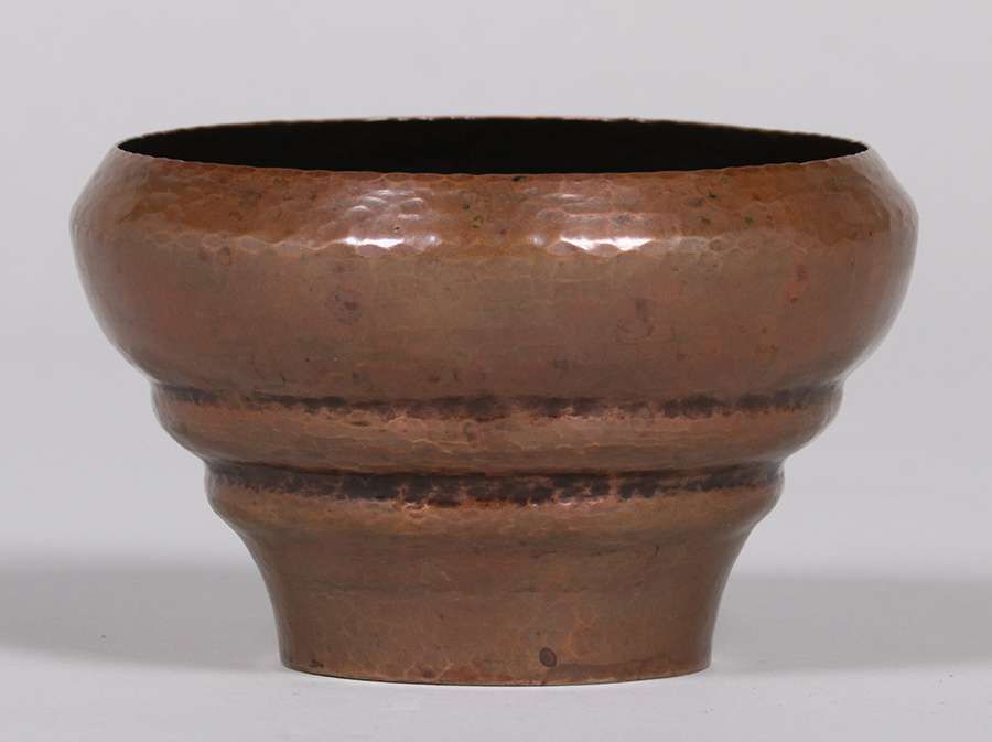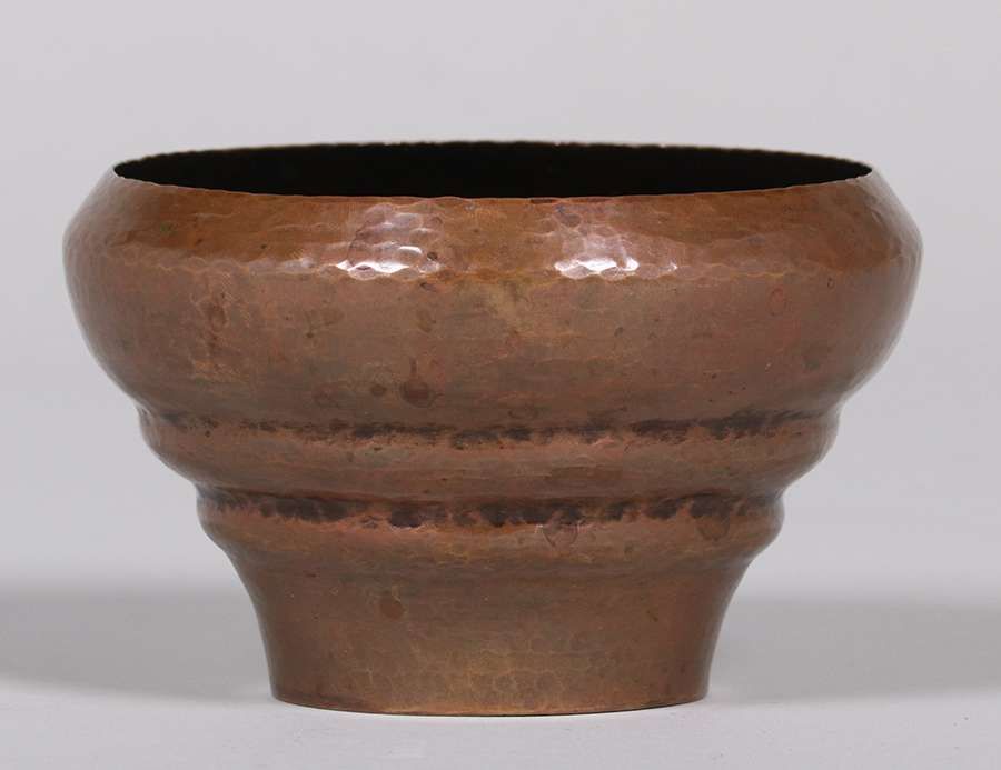 Harry St John Dixon Hammered Copper stacked ribbed vase. Signed. Excellent original patina. 3"h x 4.75"d SOLD