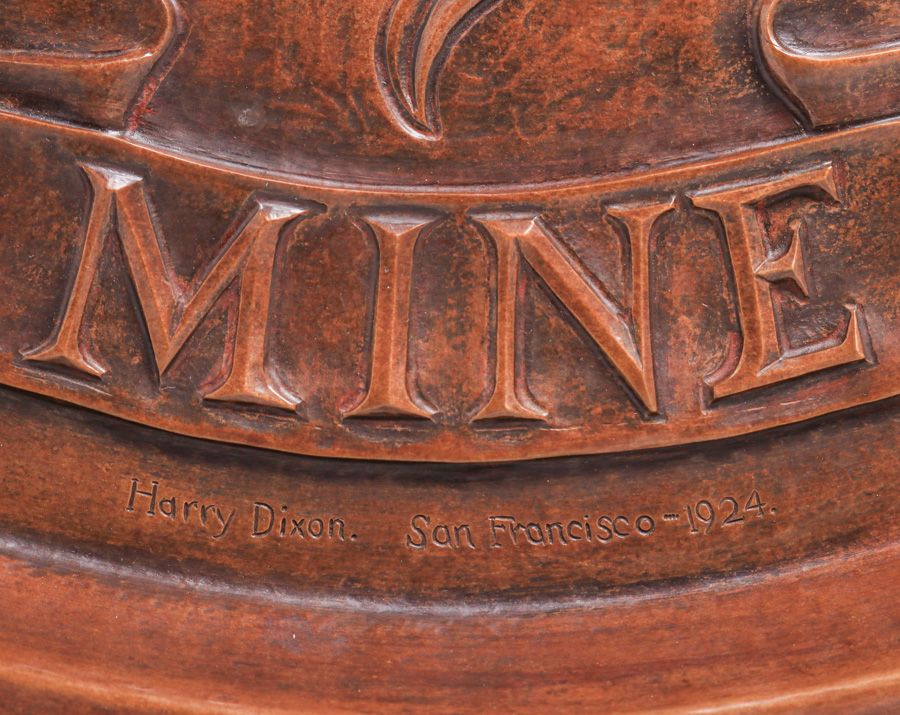 Massive Harry St John Dixon Hand-Hammered Brass Scottish Plaque 1924. Excellent new patina. "Virtue Mine Honour" 31.5"d SOLD