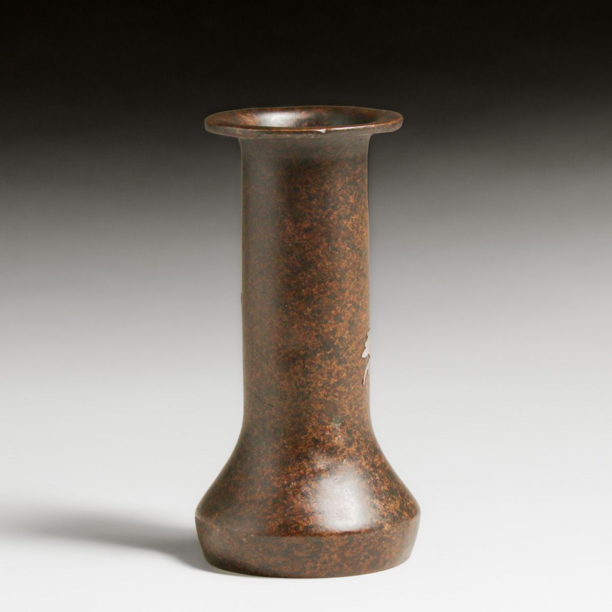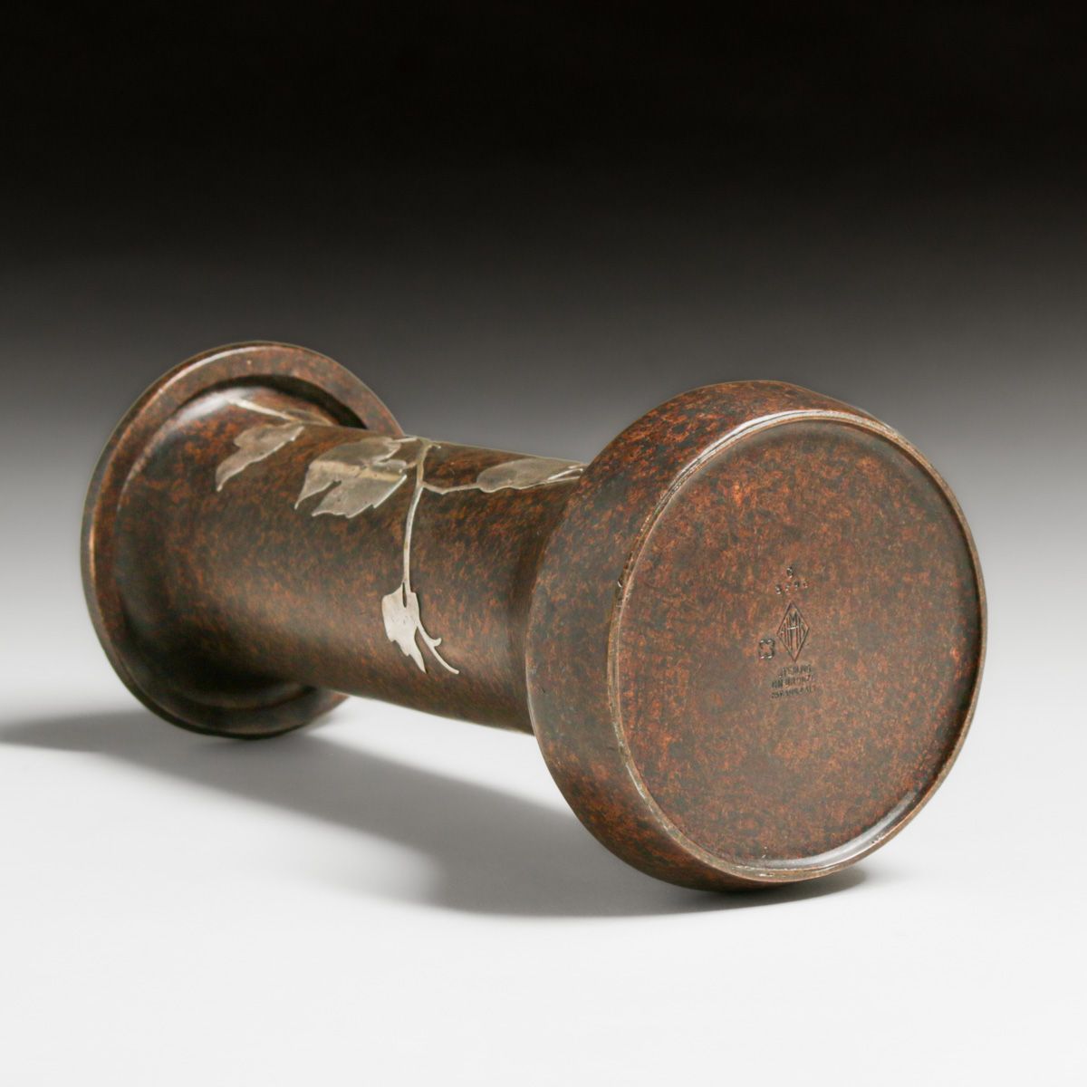 Heintz #3596 Sterling on Bronze Vase c1915. Signed. Excellent new patina. 7.5"h x 3.75"d