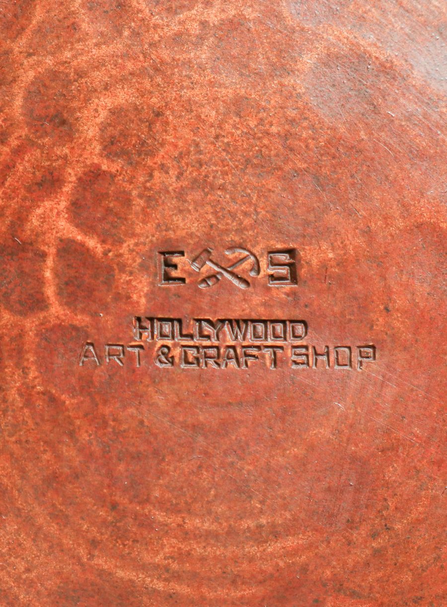 Hollywood Arts & Crafts Shop Hammered Copper Vase c1920s. Signed. Color added to original patina. 10.5"d x 6.25"h $950
