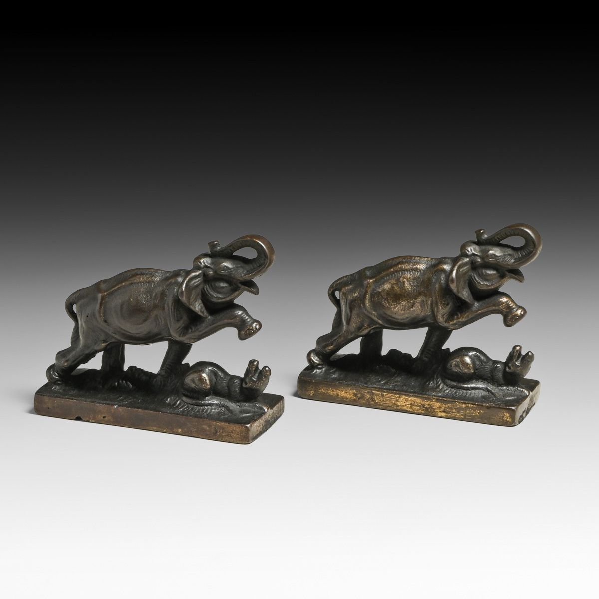 - Hubley - Lancaster, PA Cast Iron Elephant Bookends c1920s