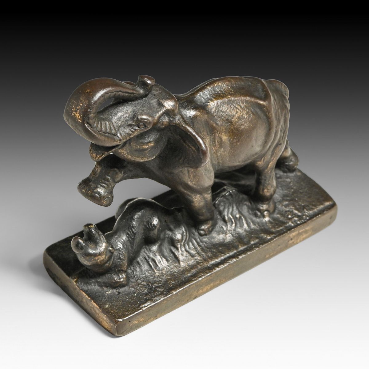 Hubley - Lancaster, PA Cast Iron Elephant Bookends c1920s. Unsigned. Excellent original patina. 5"w x 2"d x 4 3/8"h