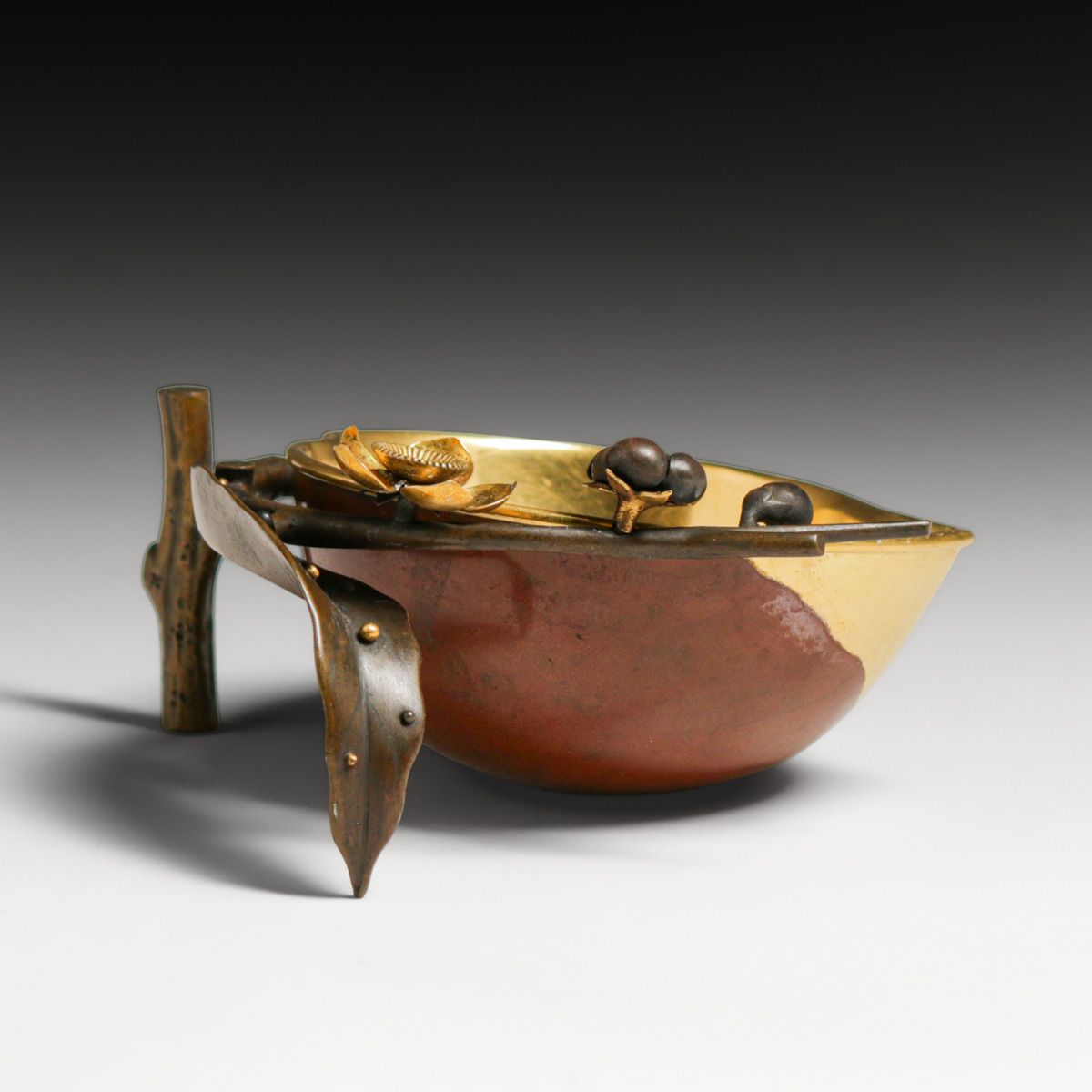 - Antique Japanese Meiji Period Patinated & Gilt Bronze Bowl c1900