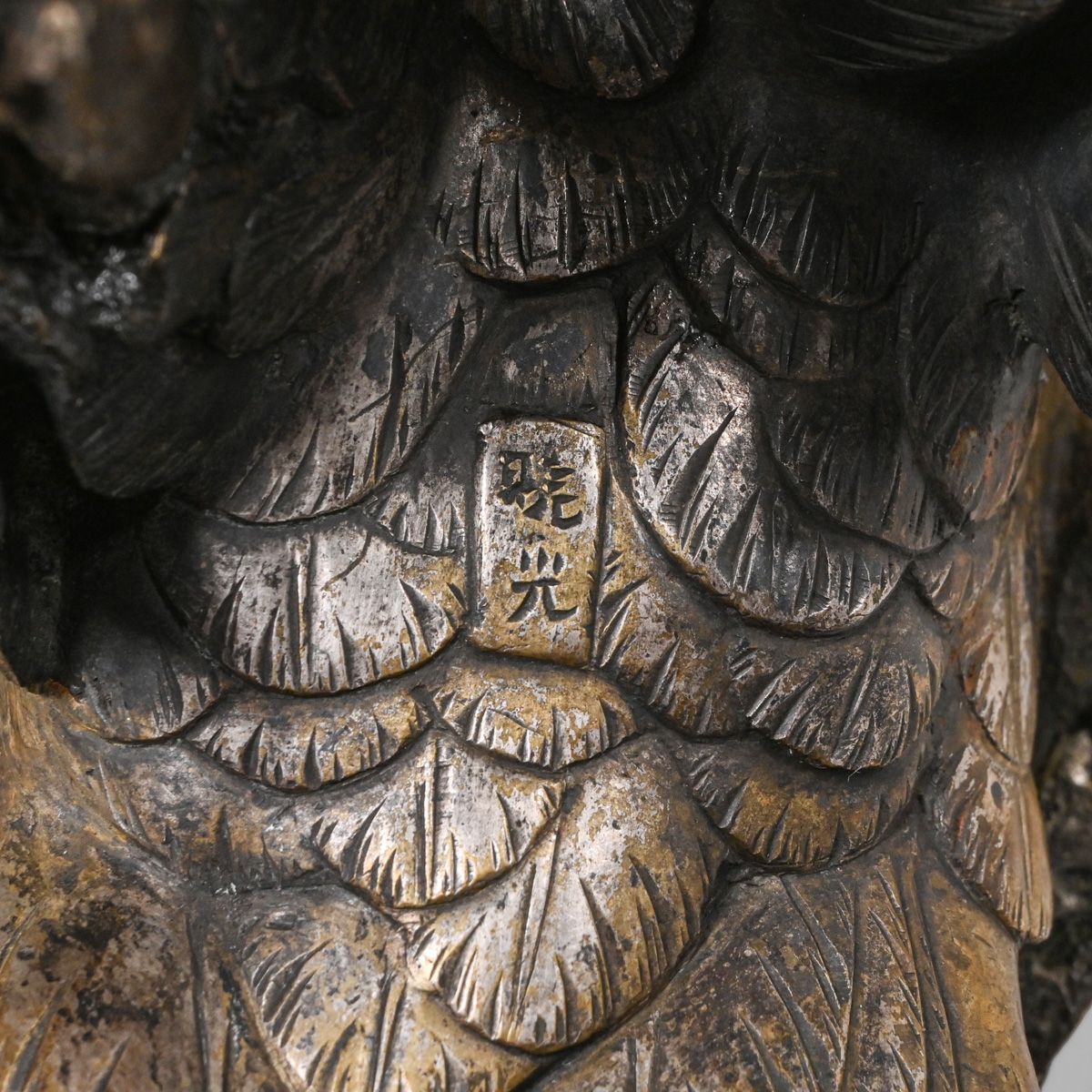 Japanese Arts & Crafts Meiji Period Bronze Owl c1910. Signed. Excellent original patina. Overall 20.5"h x 14.5"w x 9.25"